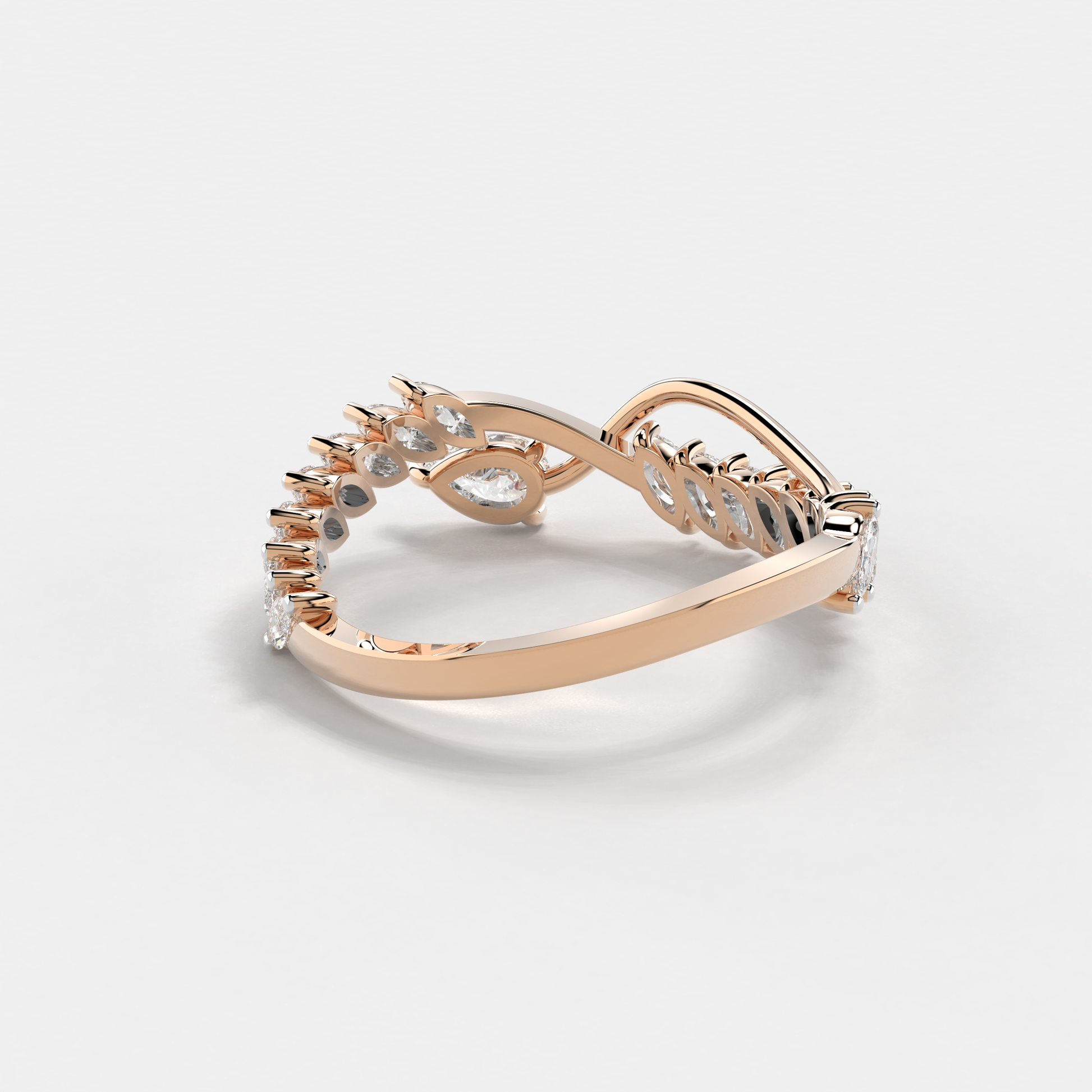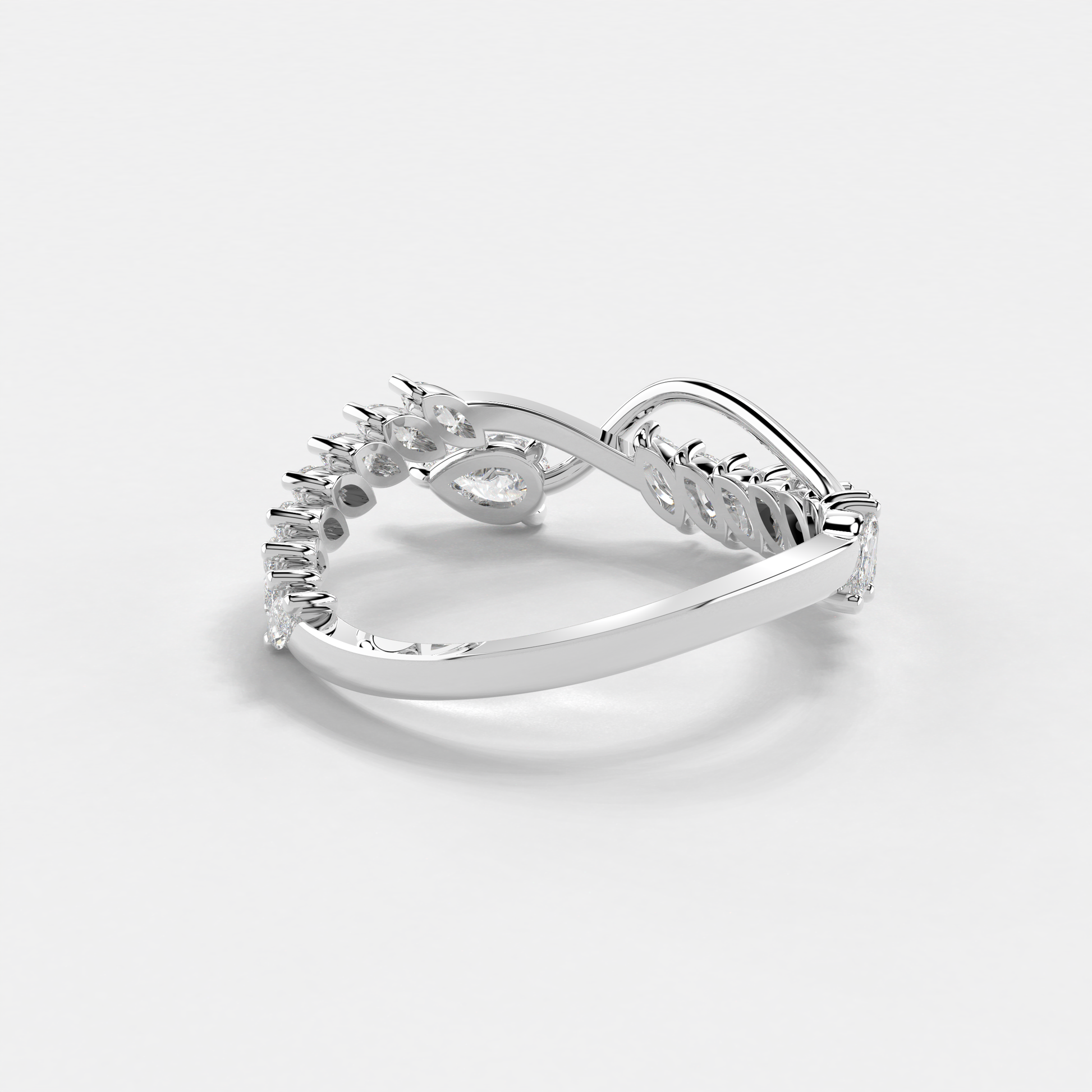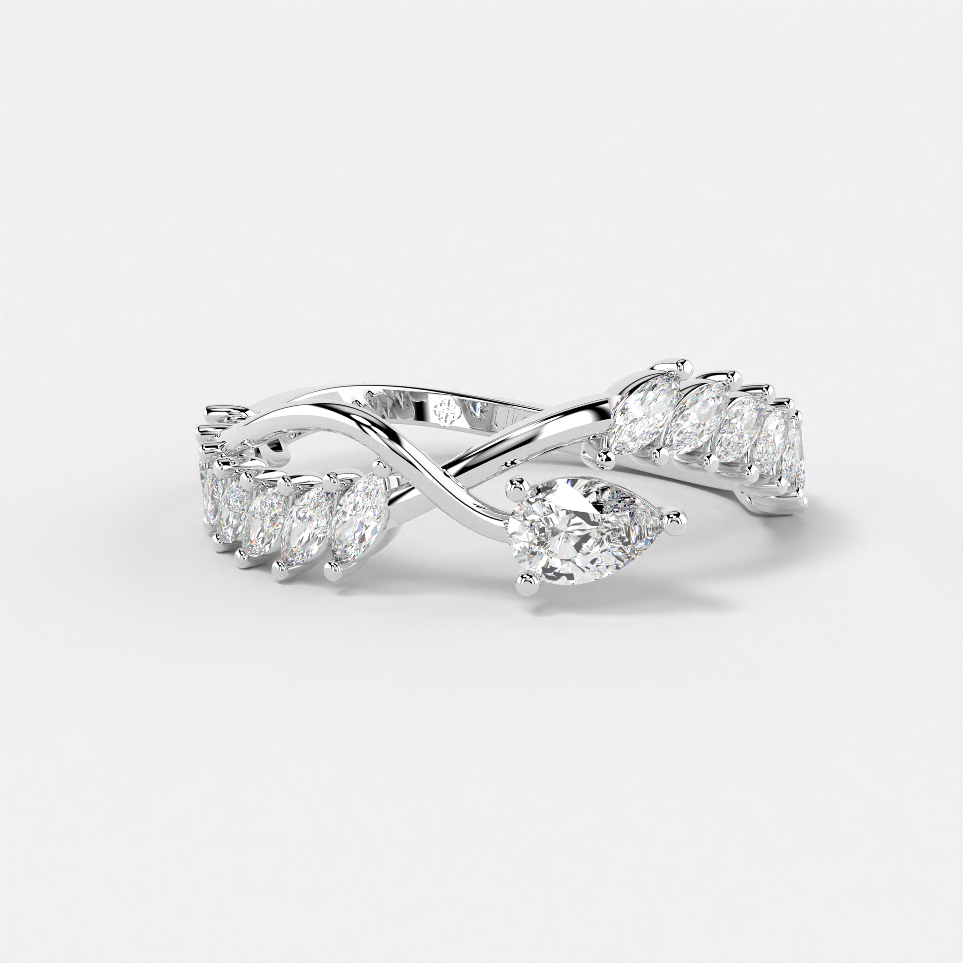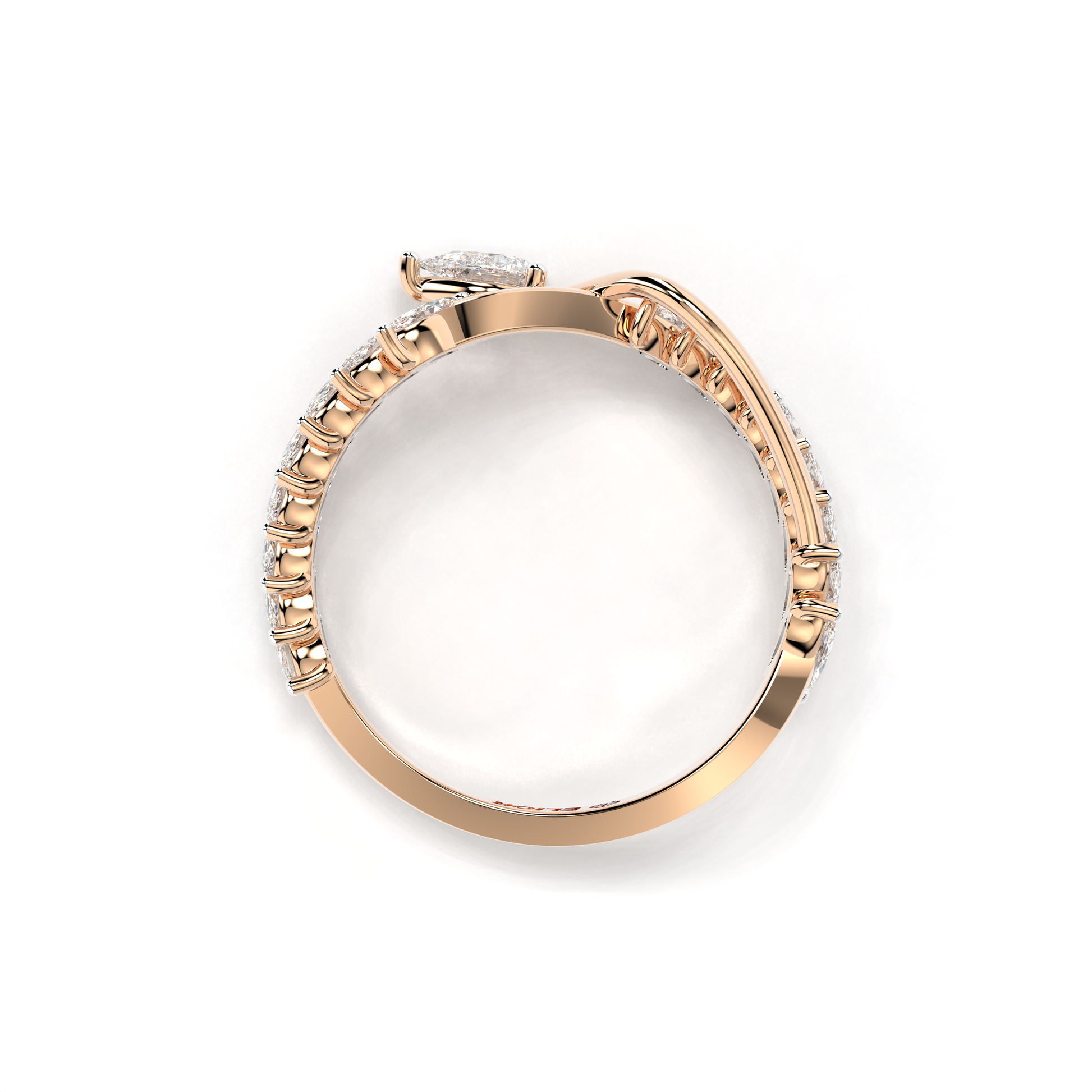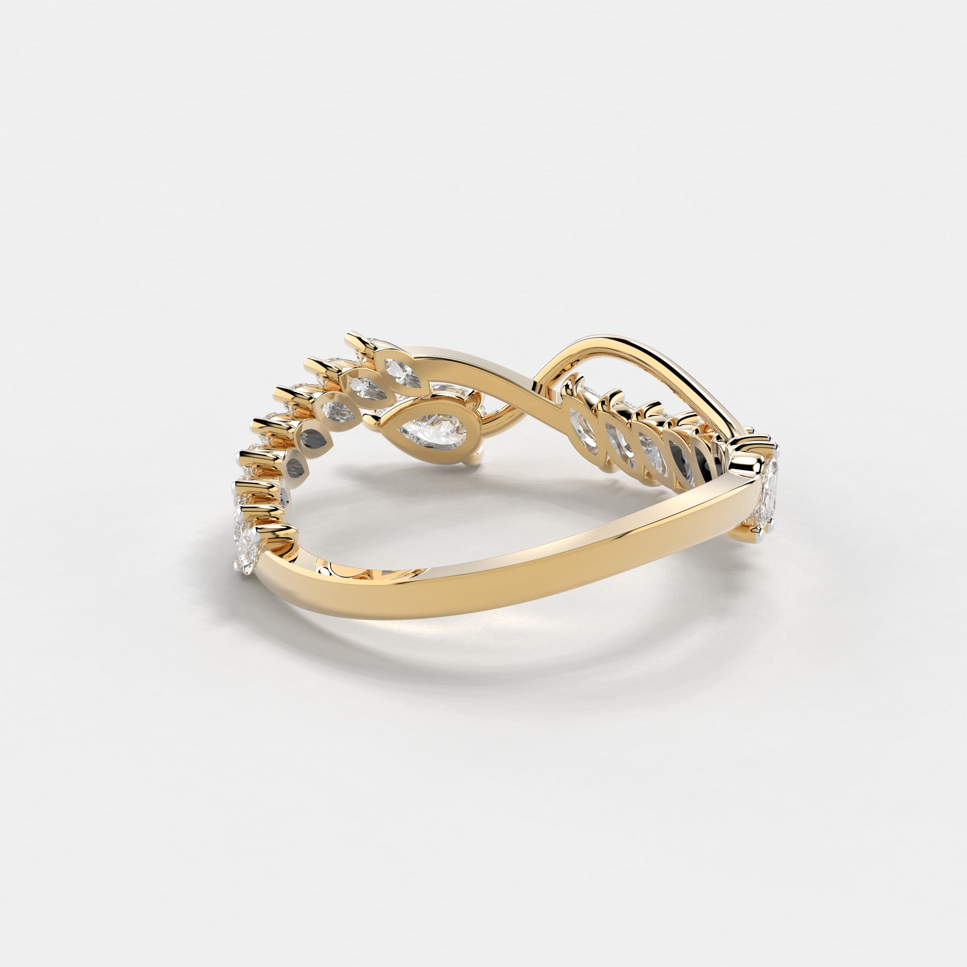 Presenting the 'Pearlescent Marquise Ring' from Elior Jewel, a creation where artistry meets luxury. This ring is a celebration of craftsmanship, featuring a graceful curve adorned with 16 marquise-cut diamonds, totaling 0.47 carats, which lead to a stunning pear-shaped centerpiece of 0.20 carats approximately. The diamonds are meticulously arranged to capture and reflect light from every angle. This ring, combines the warmth of gold with the fire of diamonds to create a piece that's not just a ring, but a statement. The 'Pearlescent Marquise Splendor Ring' is an epitome of refined elegance, designed to add a touch of brilliance to any occasion.