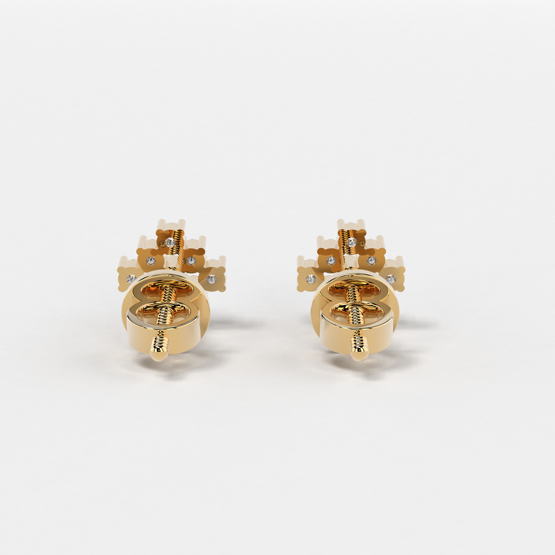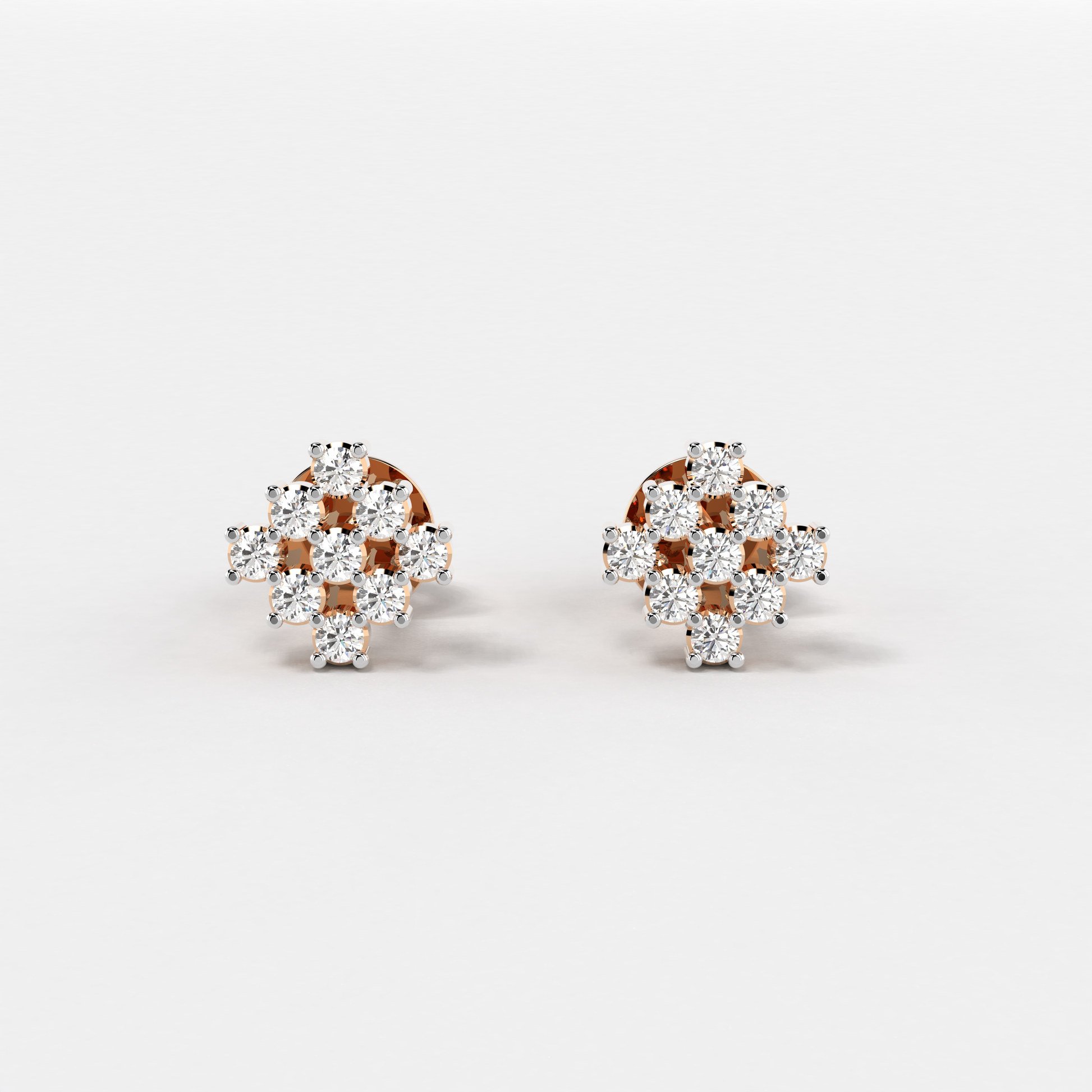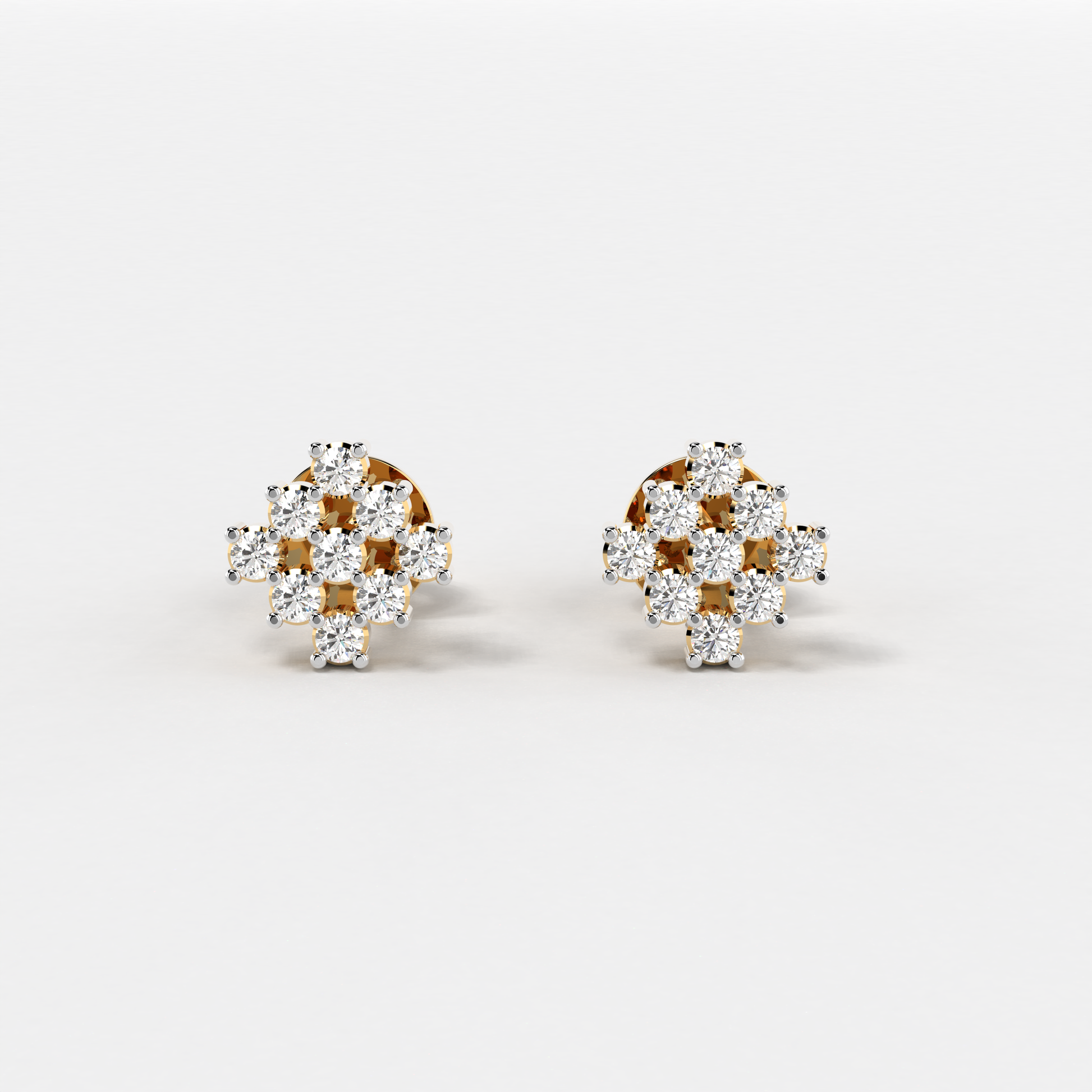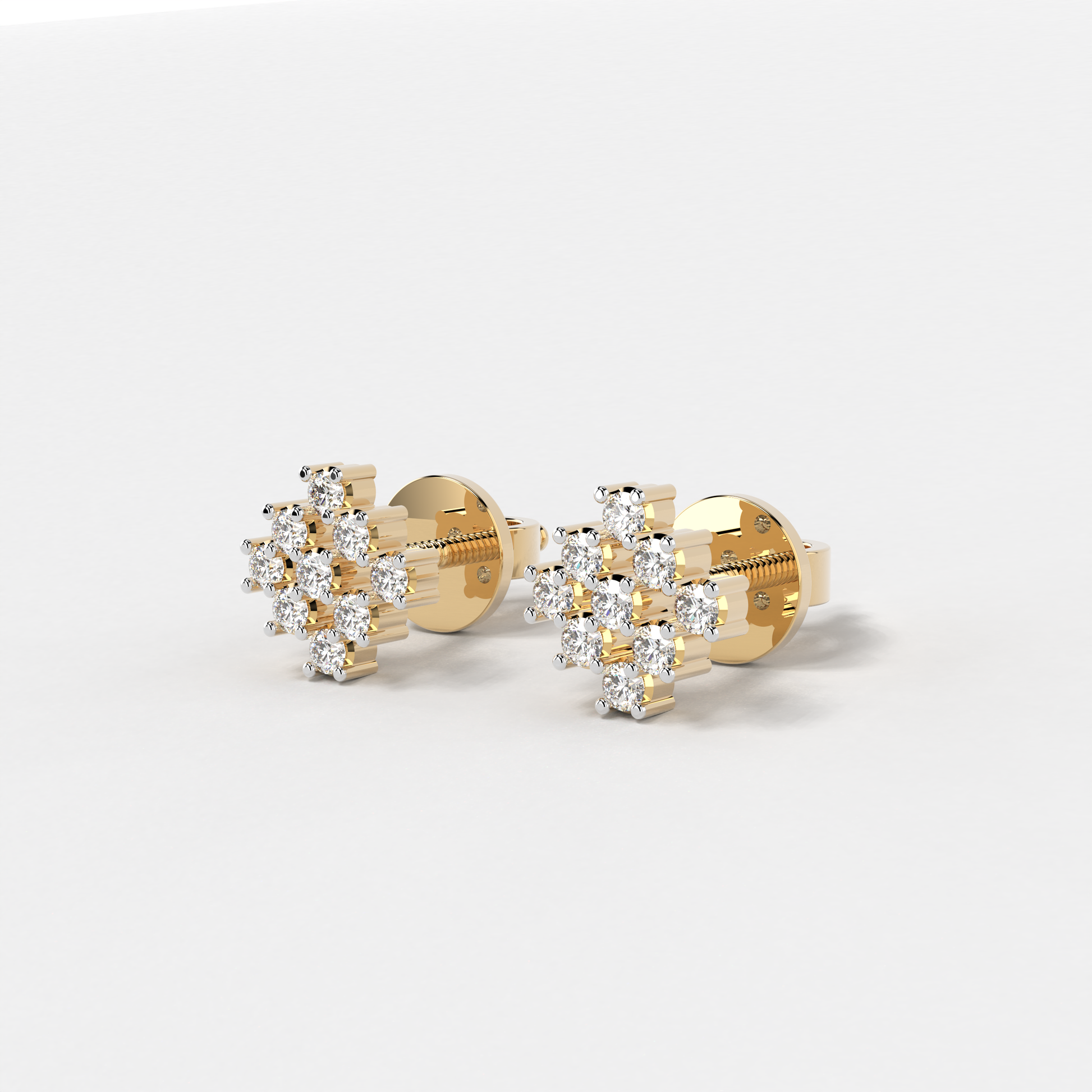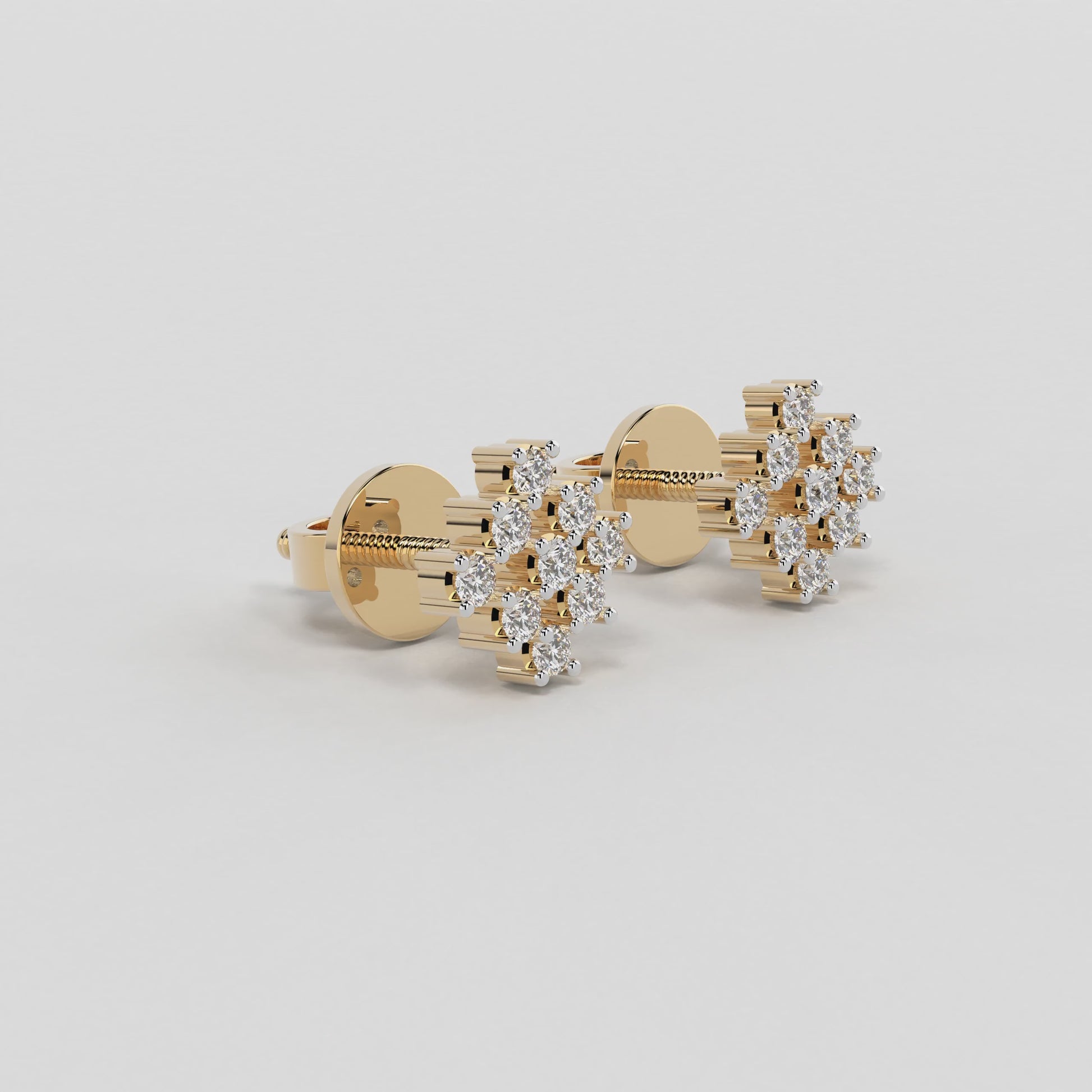 Indulge in the captivating sparkle of these exquisite 'Glimmering Cluster Earrings', a masterpiece meticulously crafted by Elior Jewel. These earrings embody the perfect fusion of modern elegance and timeless charm.Each earring features a cluster of nine round brilliant-cut diamonds, meticulously arranged in a captivating geometric pattern. The 18 diamonds, totaling 0.22 carats in weight approximately, are expertly set to maximize their brilliance and fire, creating a dazzling display of light that will catch the eye from every angle.The clean lines and minimalist design of these earrings make them a versatile accessory for any occasion. Whether you're dressing up for a special event or adding a touch of sparkle to your everyday look, these stud earrings will effortlessly elevate your style.Crafted with meticulous attention to detail and unwavering commitment to quality, these 'Glimmering Cluster Earrings' by Elior Jewel are more than just an accessory; they are a symbol of enduring beauty and sophistication.