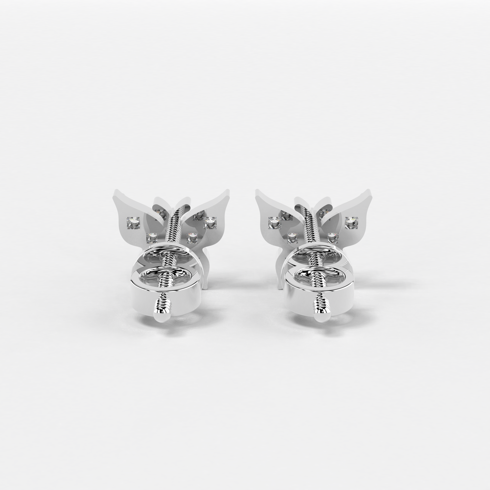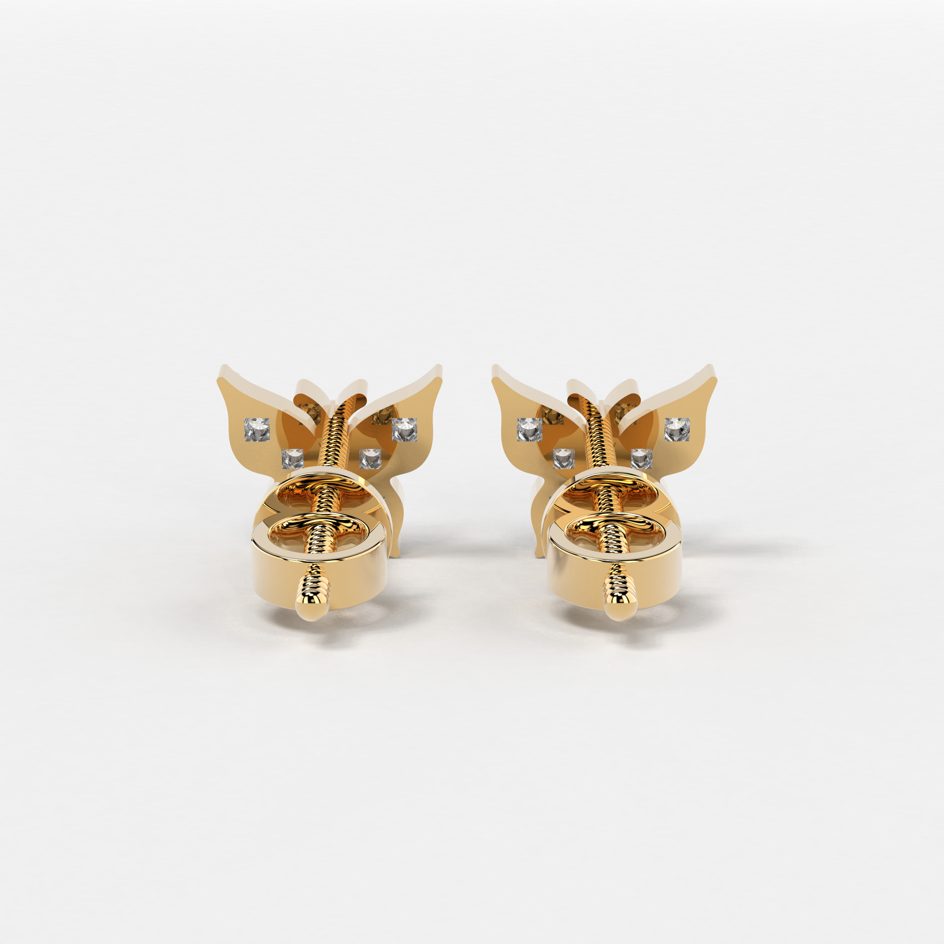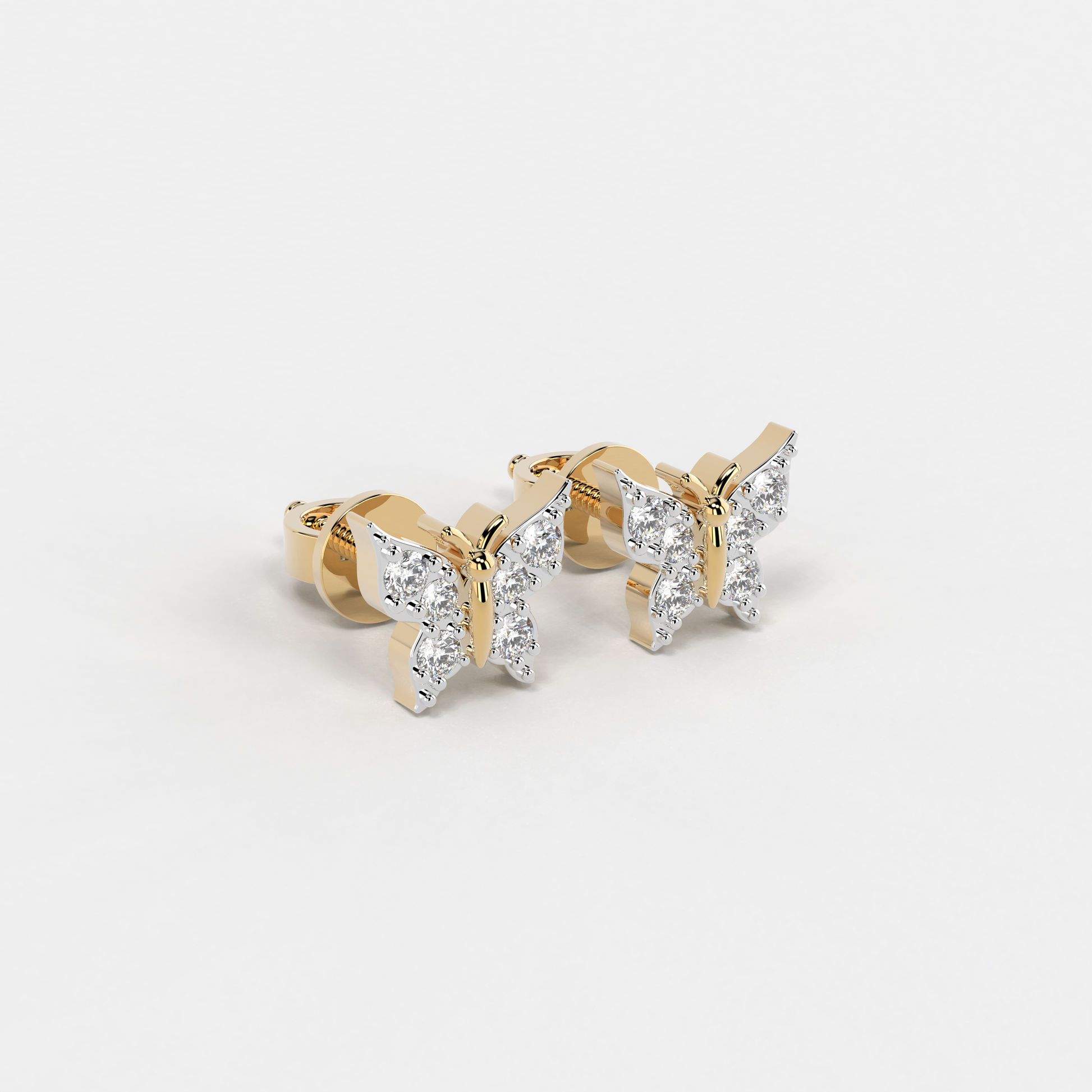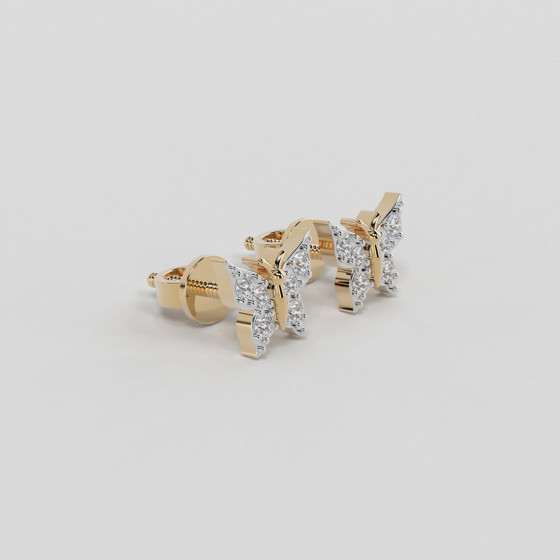 Indulge in the delicate charm of these exquisite 'Butterfly Studs Earrings', a masterpiece meticulously crafted by Elior Jewel. Inspired by the ethereal beauty of butterflies, each earring features a miniature butterfly motif, its wings gracefully adorned with shimmering diamonds that capture and reflect light with every movement. The round brilliant-cut diamonds, carefully selected for their exceptional quality, are arranged in a cluster to create a dazzling display of sparkle and fire, reminiscent of sunlight dancing on delicate wings. With a total of 12 round brilliant-cut diamonds weighing 0.15 carats approximately, these earrings exude a radiant glow that will illuminate your face with a touch of playful sophistication. The secure posts ensure a comfortable and worry-free fit, allowing you to wear these earrings with confidence throughout the day or evening. Whether you're attending a special occasion or simply adding a touch of whimsy to your everyday attire, the 'Butterfly Studs Earrings' are sure to become a cherished addition to your jewelry collection. Their unique design and exquisite craftsmanship make them a symbol of enduring beauty and playful charm, a reminder of the transformative power of nature and the beauty that surrounds us.