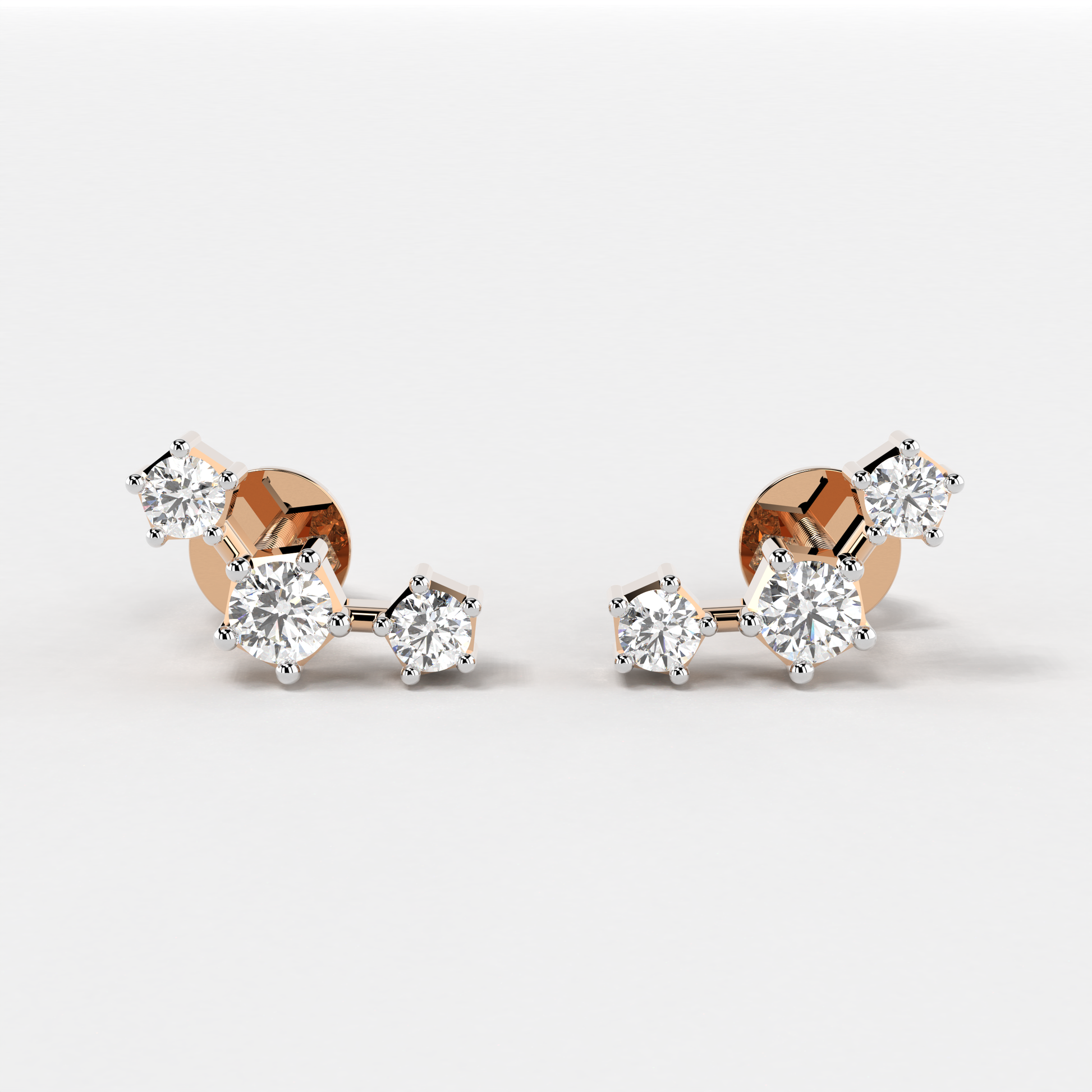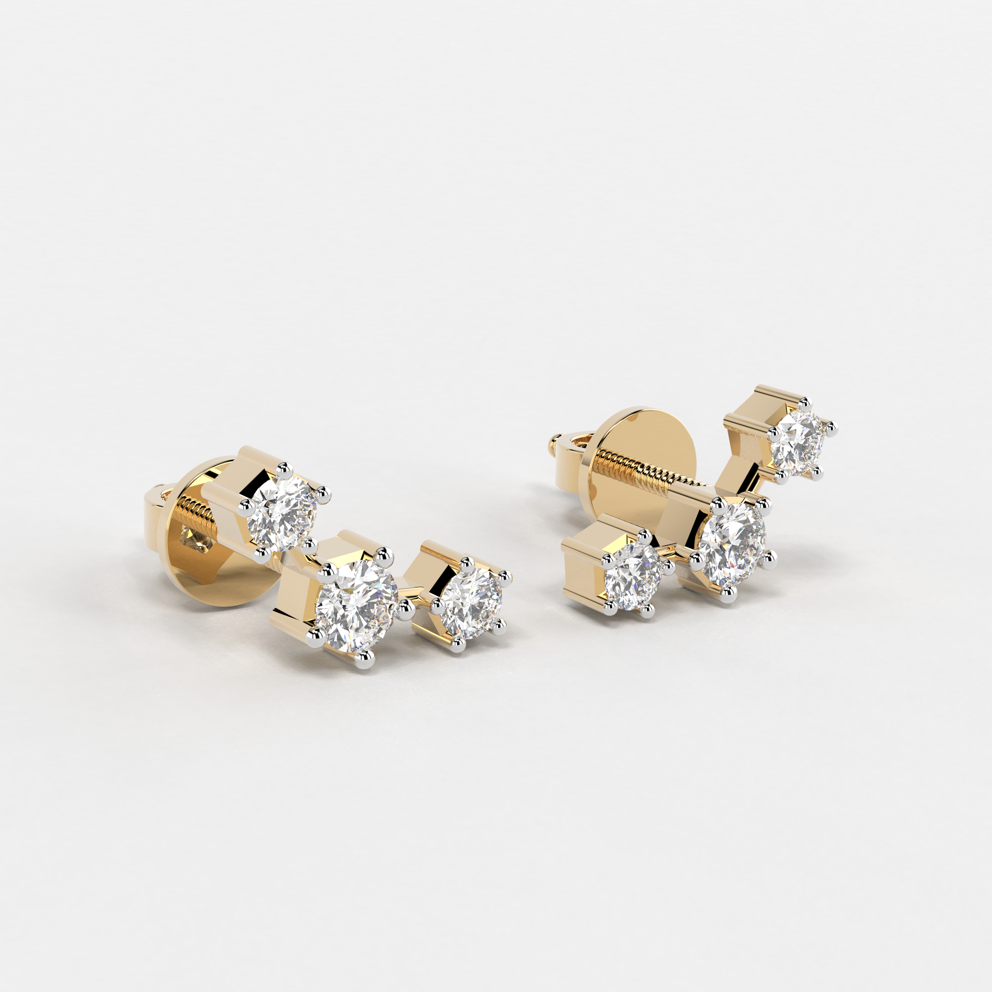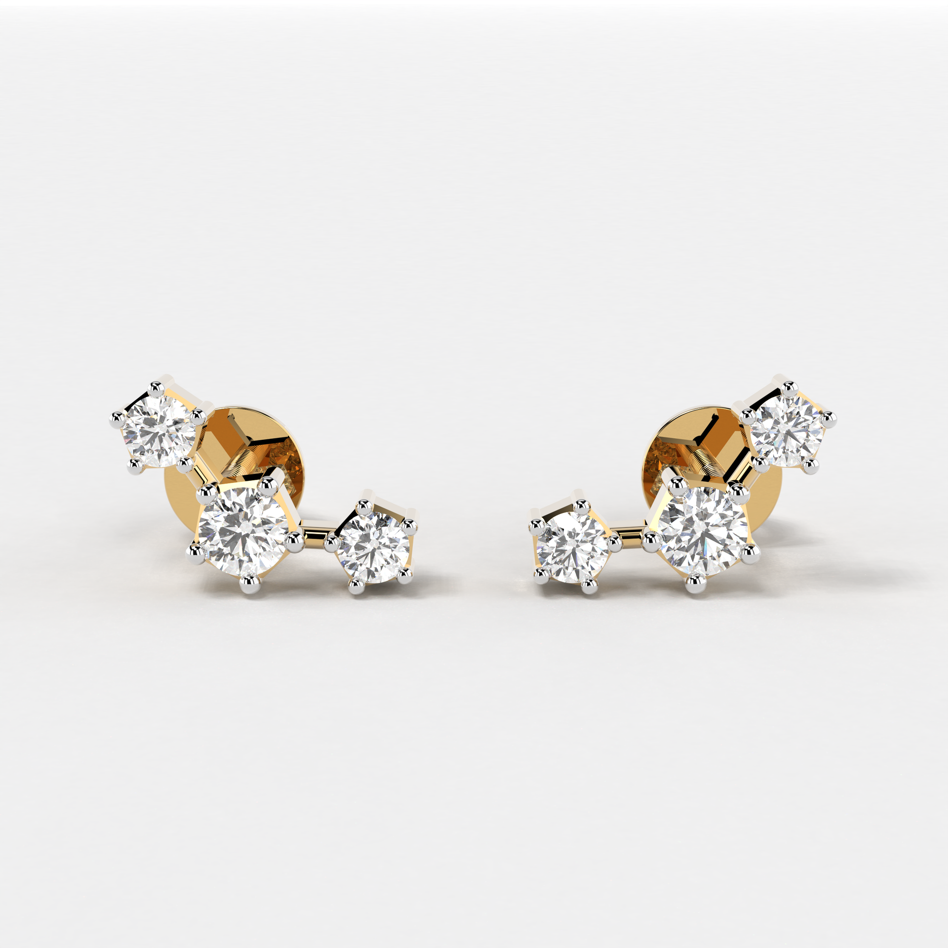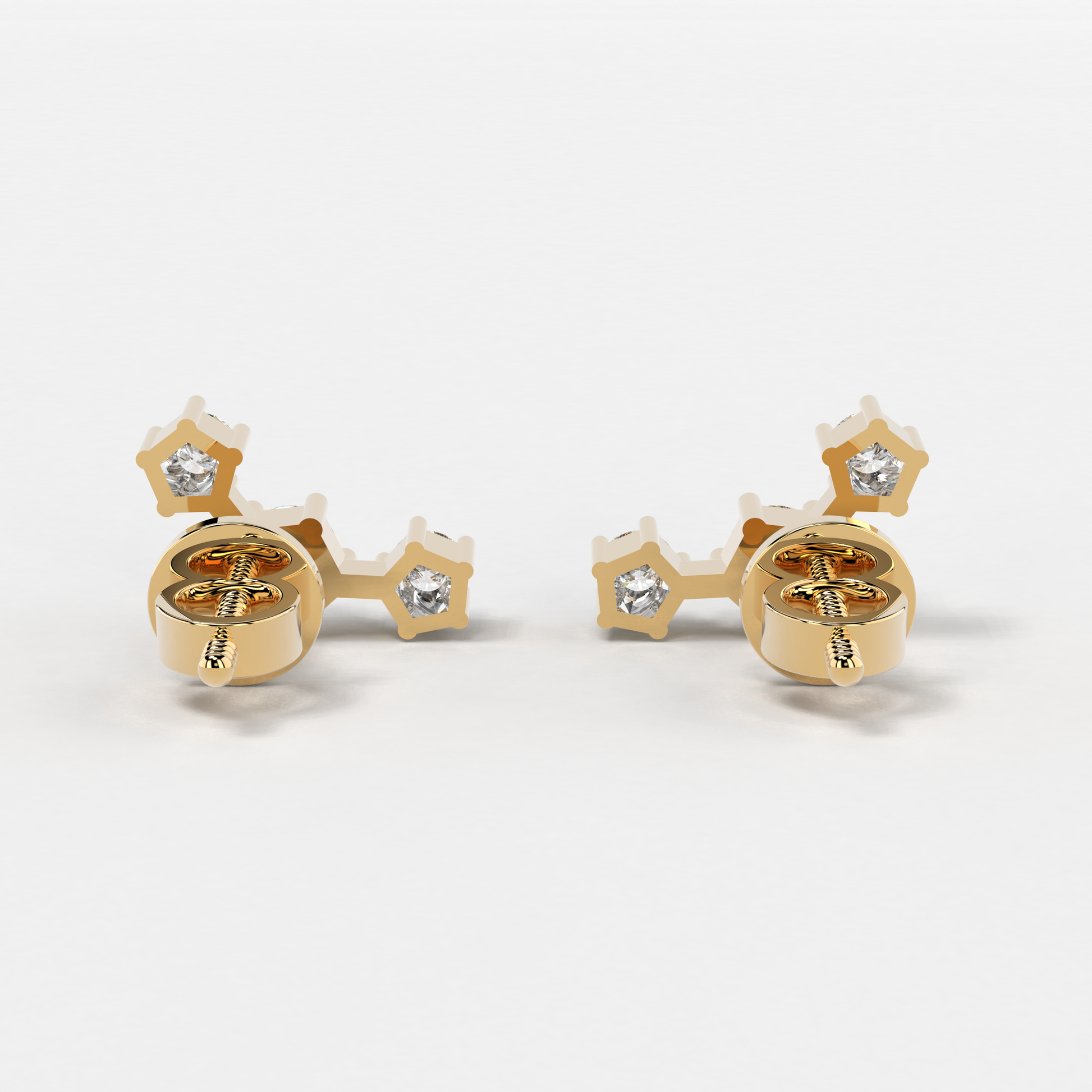 Gaze upon the celestial beauty of these exquisite 'Stargazer's Delight Diamond Earrings', a masterpiece meticulously crafted by Elior Jewel. Fashioned in your choice of lustrous gold, these earrings embody the perfect fusion of modern elegance and cosmic inspiration. Each earring features a captivating arrangement of three graduated round brilliant-cut diamonds, reminiscent of a constellation sparkling in the night sky. The diamonds, totaling 0.44 carats in weight approximately, are expertly set to maximize their brilliance and fire, creating a dazzling display that will catch the eye from every angle. The earrings' unique design traces the graceful arc of a constellation, with each diamond representing a celestial body. The graduated sizes of the diamonds create a sense of movement and dynamism, as if the stars are dancing across the night sky. The clean lines and minimalist design of these earrings make them a versatile accessory for any occasion. Whether you're dressing up for a special event or adding a touch of sparkle to your everyday look, these stud earrings will effortlessly elevate your style with their celestial charm. Crafted with meticulous attention to detail and unwavering commitment to quality, these Stargazer's Delight Diamond Earrings by Elior Jewel are more than just an accessory; they are a symbol of enduring beauty and a reminder of the vastness and wonder of the universe. Elevate your jewelry collection with these exquisite earrings, a testament to the enduring beauty of diamonds and the artistry of Elior Jewel. Let the 'Stargazer's Delight Diamond Earrings' adorn your ears with the magic of the cosmos, adding a touch of celestial elegance to every moment.