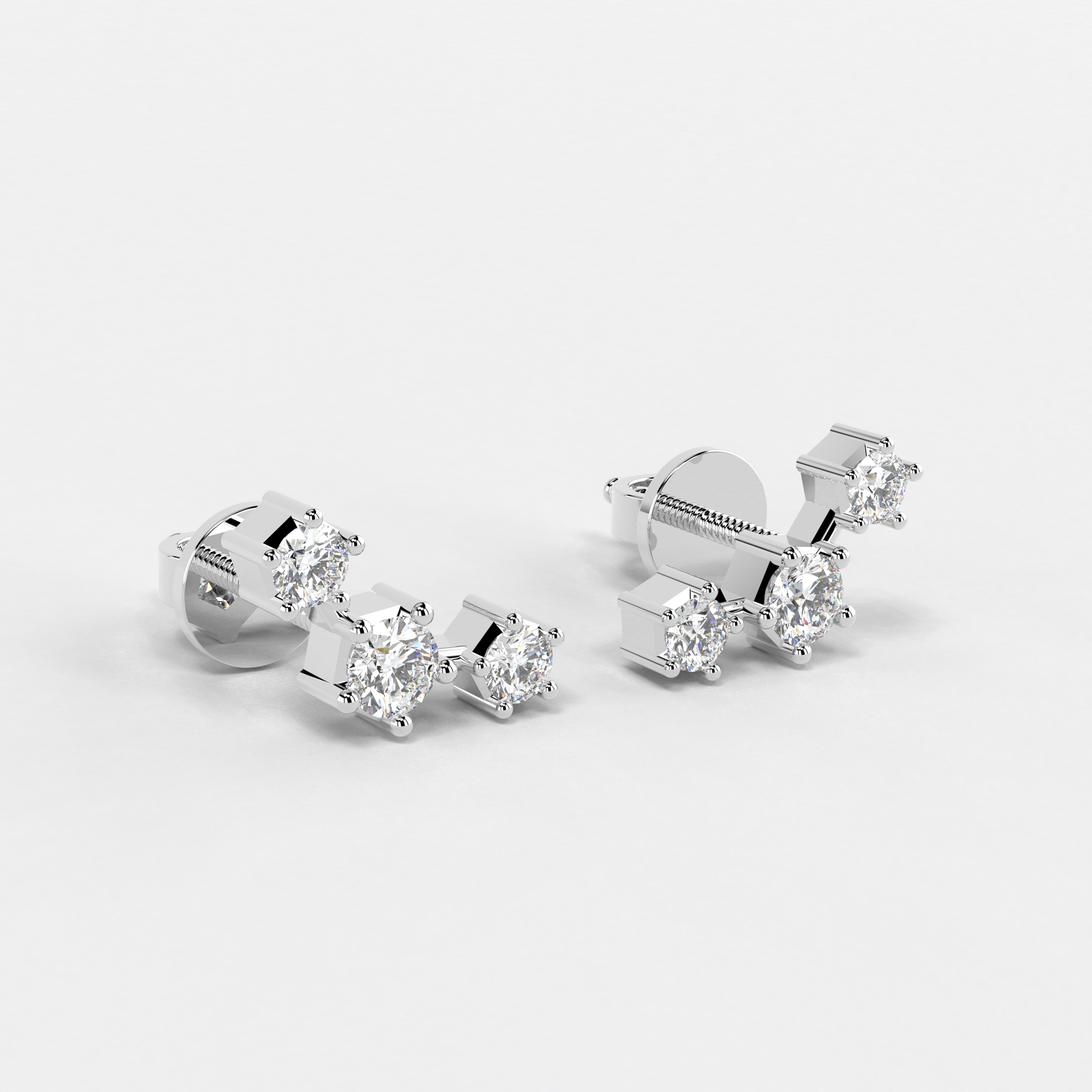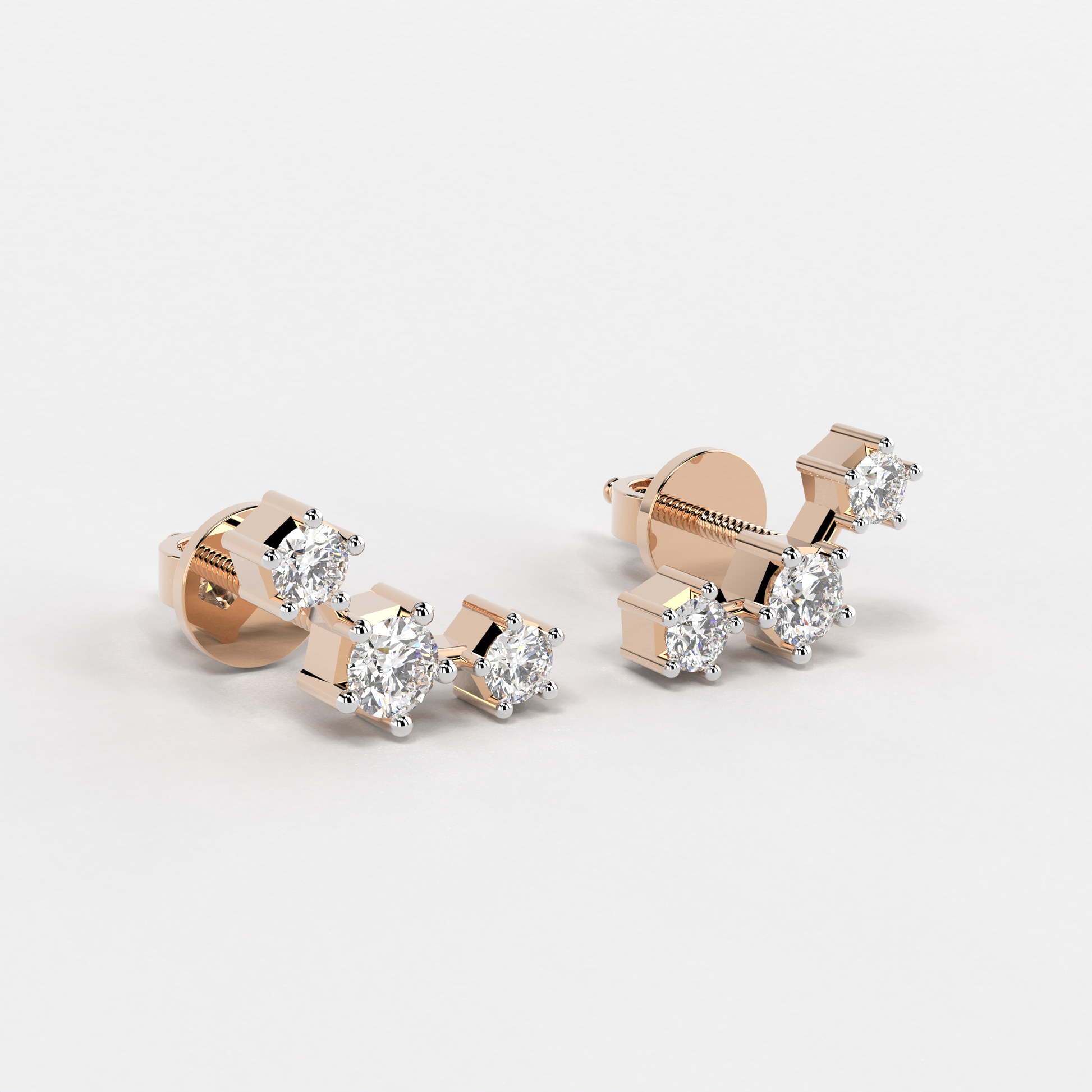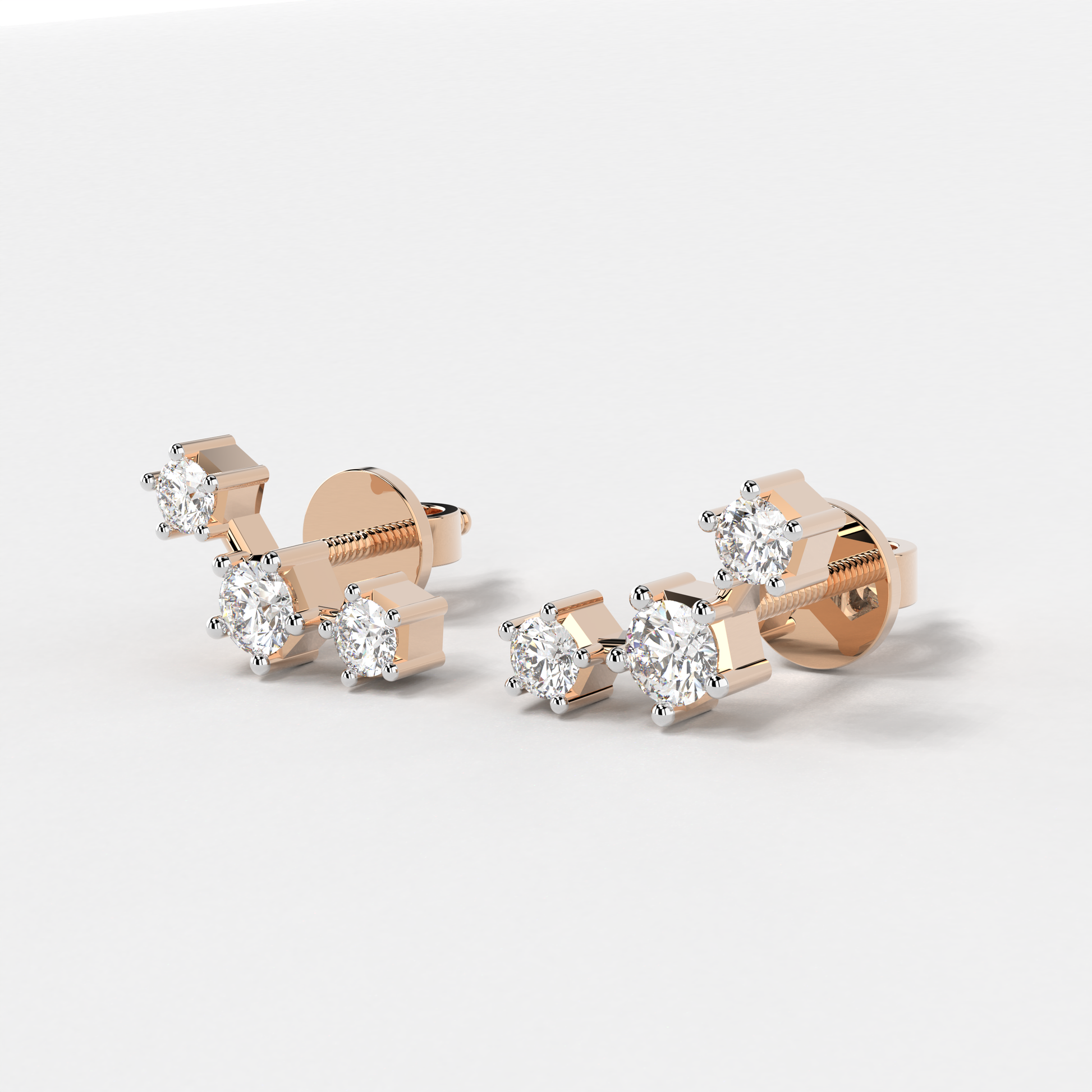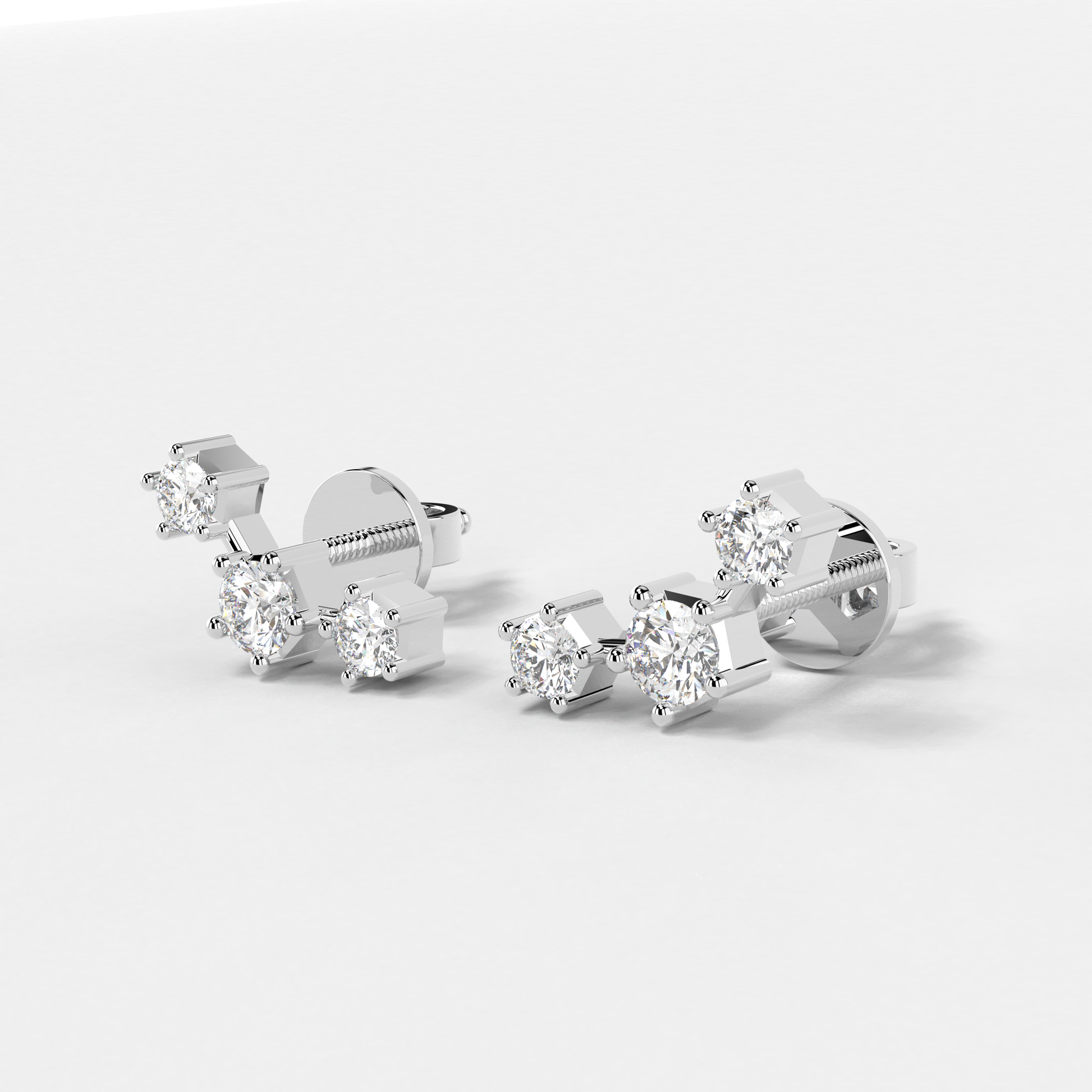 Gaze upon the celestial beauty of these exquisite 'Stargazer's Delight Diamond Earrings', a masterpiece meticulously crafted by Elior Jewel. Fashioned in your choice of lustrous gold, these earrings embody the perfect fusion of modern elegance and cosmic inspiration. Each earring features a captivating arrangement of three graduated round brilliant-cut diamonds, reminiscent of a constellation sparkling in the night sky. The diamonds, totaling 0.44 carats in weight approximately, are expertly set to maximize their brilliance and fire, creating a dazzling display that will catch the eye from every angle. The earrings' unique design traces the graceful arc of a constellation, with each diamond representing a celestial body. The graduated sizes of the diamonds create a sense of movement and dynamism, as if the stars are dancing across the night sky. The clean lines and minimalist design of these earrings make them a versatile accessory for any occasion. Whether you're dressing up for a special event or adding a touch of sparkle to your everyday look, these stud earrings will effortlessly elevate your style with their celestial charm. Crafted with meticulous attention to detail and unwavering commitment to quality, these Stargazer's Delight Diamond Earrings by Elior Jewel are more than just an accessory; they are a symbol of enduring beauty and a reminder of the vastness and wonder of the universe. Elevate your jewelry collection with these exquisite earrings, a testament to the enduring beauty of diamonds and the artistry of Elior Jewel. Let the 'Stargazer's Delight Diamond Earrings' adorn your ears with the magic of the cosmos, adding a touch of celestial elegance to every moment.