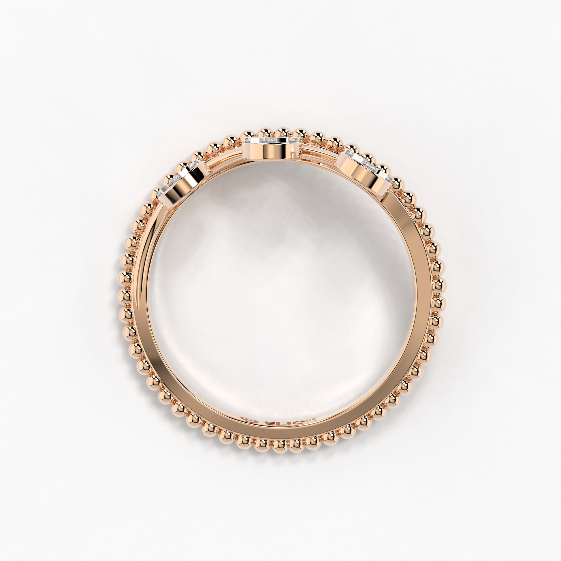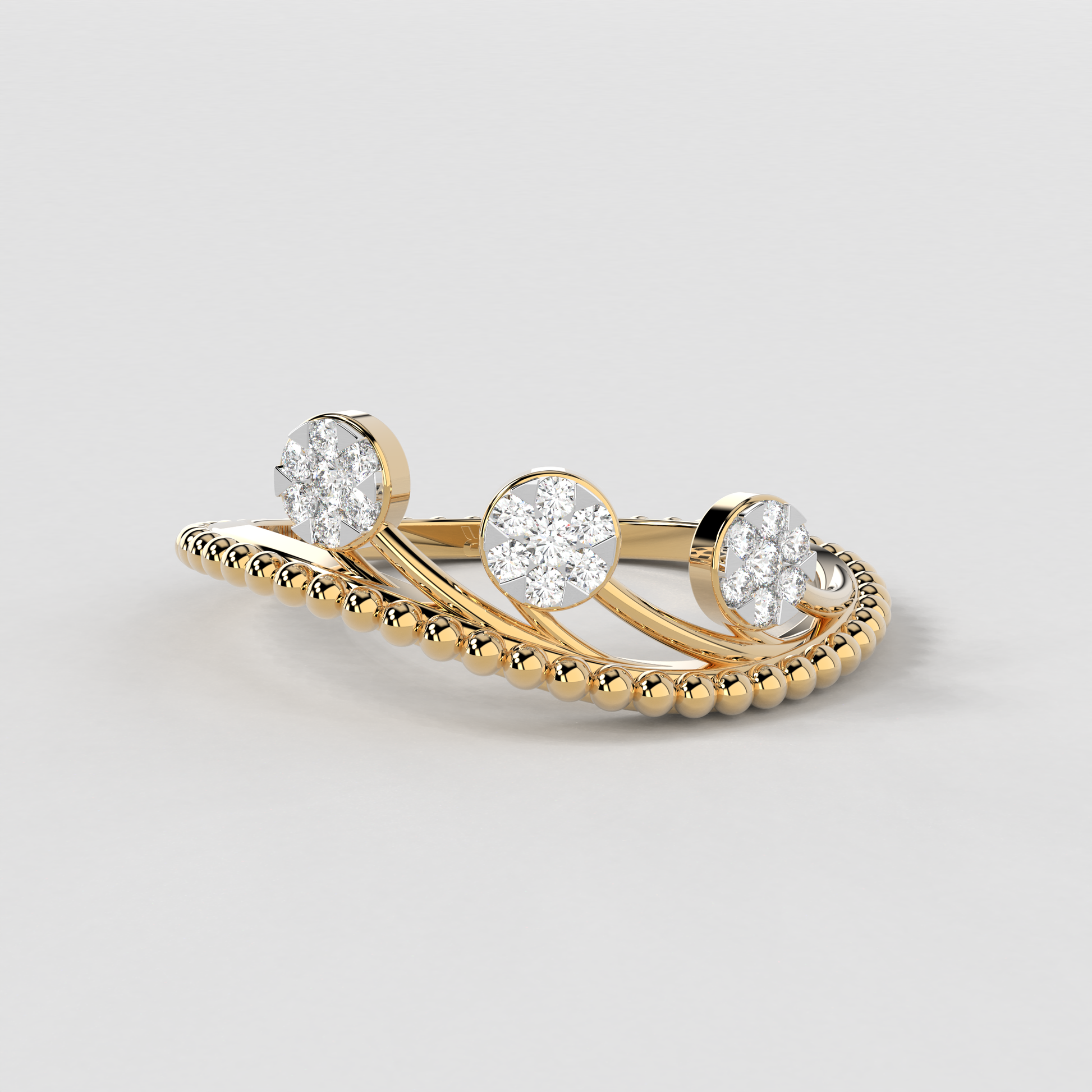 Discover the timeless elegance of the 'Trinity Bliss Ring' from Elior Jewel. This exquisite ring features three stunning oval-cut diamonds, meticulously chosen for their exceptional brilliance and clarity. Weighing a total of 0.34 carats approximately, is set in prongs that allow light to enhance their natural sparkle, symbolizing unity and harmony. Crafted from the finest gold, the band of the Trinity Bliss Ring is adorned with intricate bead-like details that add a touch of vintage charm to its modern design. This careful detailing not only enhances the ring's visual appeal but also ensures a comfortable fit, making it perfect for everyday wear or special occasions. The 'Trinity Bliss Ring' is more than just a piece of jewelry; it’s a celebration of life’s precious moments. Whether you're marking a significant milestone, expressing your love, or simply treating yourself, this ring serves as a timeless reminder of beauty and elegance. Its versatile design complements any outfit, from casual to formal, making it a cherished addition to any jewelry collection. Beautifully crafted, The 'Trinity Bliss Ring' is ready to be gifted or treasured as a personal keepsake. Embrace the luxurious charm and sophisticated style of the Trinity Bliss Ring, a testament to the artistry and craftsmanship that define Elior Jewel.