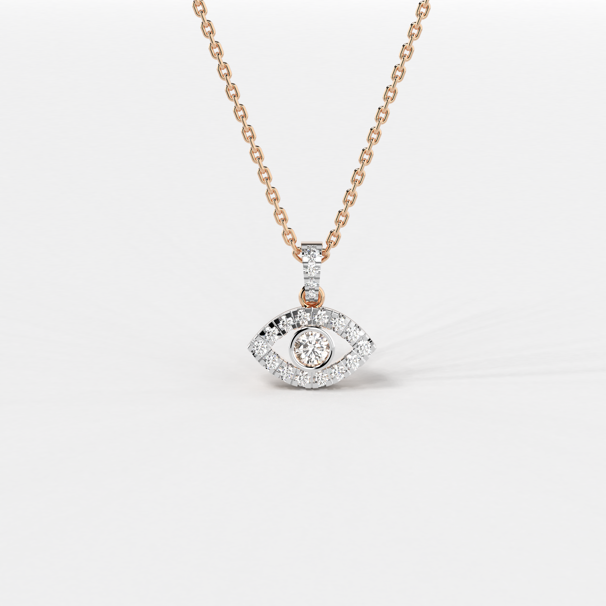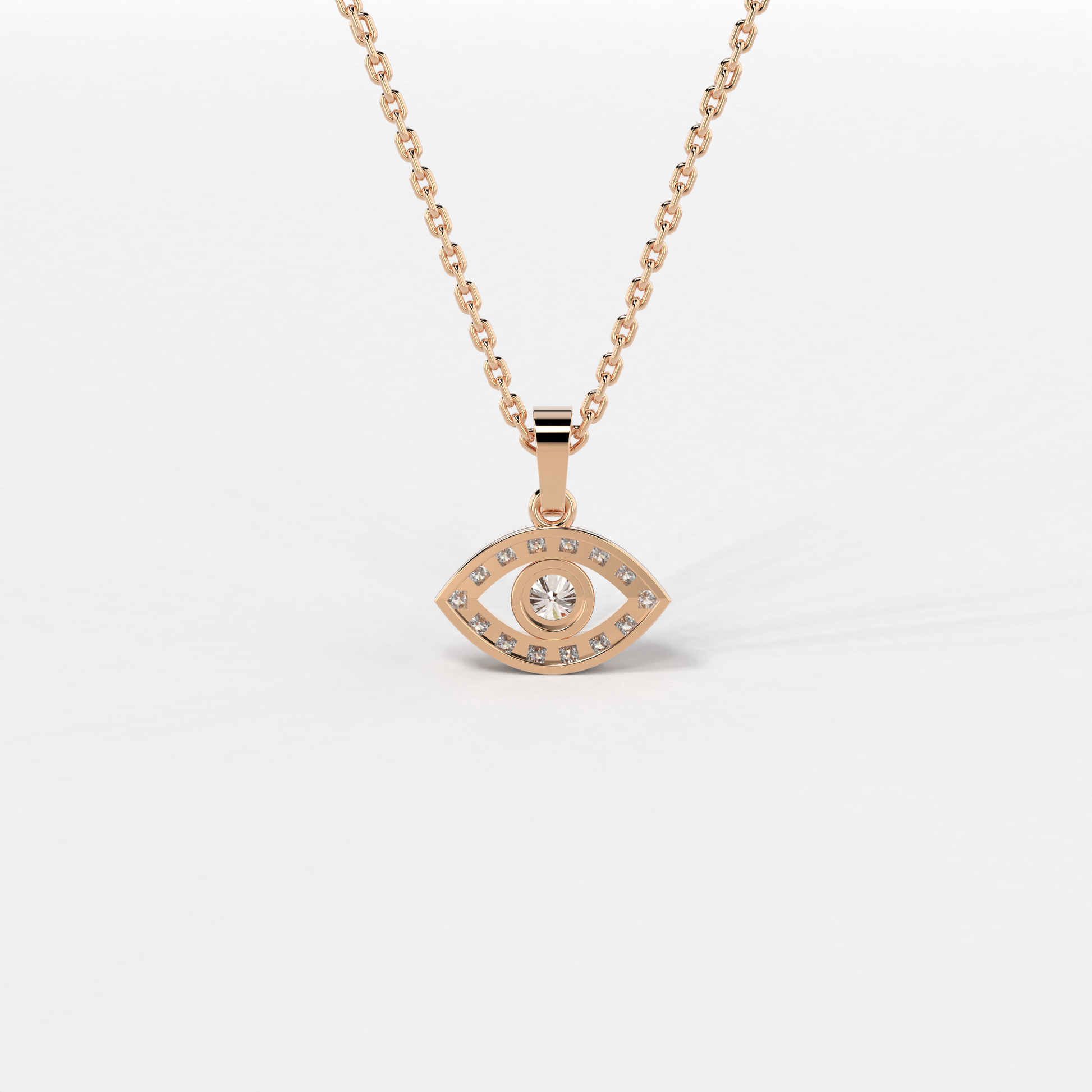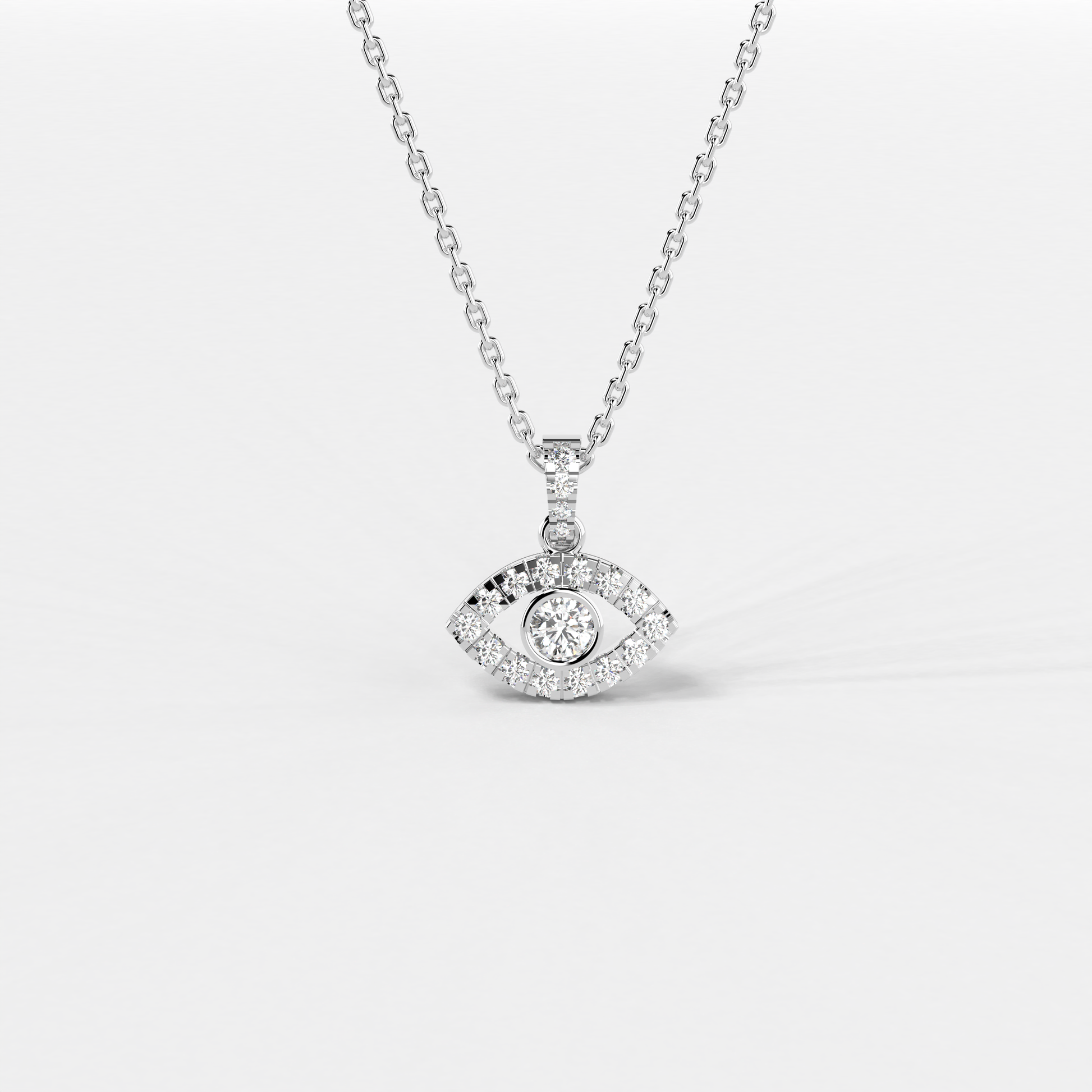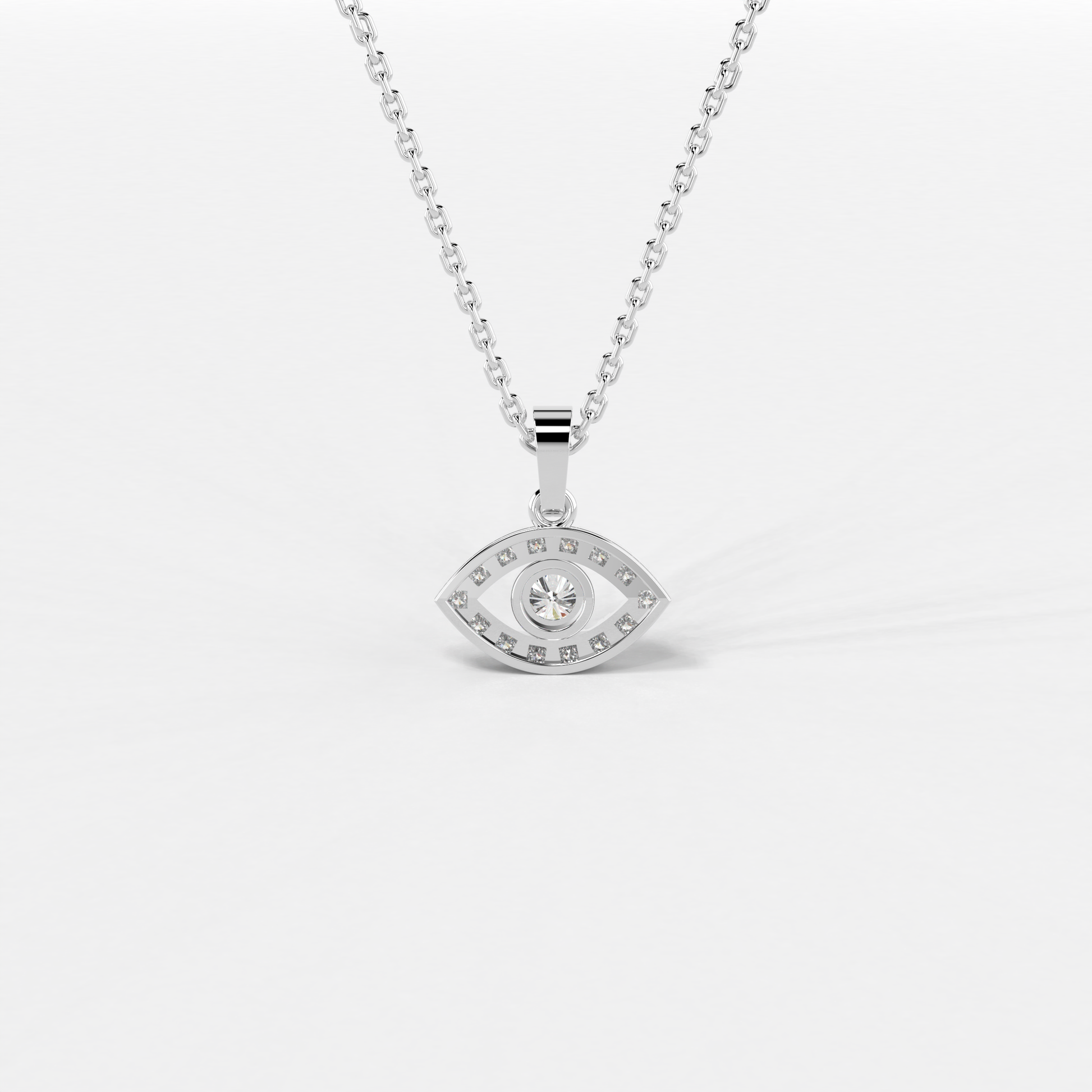The "Azure Gaze Pendant" from Elior Jewel is a stunning fusion of bold modernity and classic allure, designed to captivate and enchant. This exquisite piece features a mesmerizing deep blue sapphire at its core, encased within a brilliantly crafted eye-shaped design. The sapphire, weighing 0.66 carats, serves as the focal point, surrounded by a luminous halo of diamonds that accentuate its rich color and add to the pendant's overall sparkle. This eye-catching design not only symbolizes protection and wisdom but also adds a touch of mysterious elegance to any attire. With a total diamond weight of 0.26 carats approximately and a pendant size of 16.80 mm, the "Azure Gaze Pendant" balances intricate detailing with a statement-making presence. This pendant is a perfect choice for those seeking a piece that combines the vibrancy of sapphire with the timeless beauty of diamonds in a unique and eye-catching design.