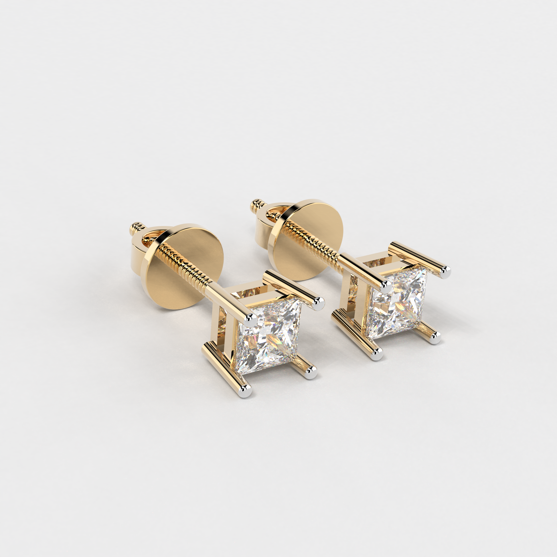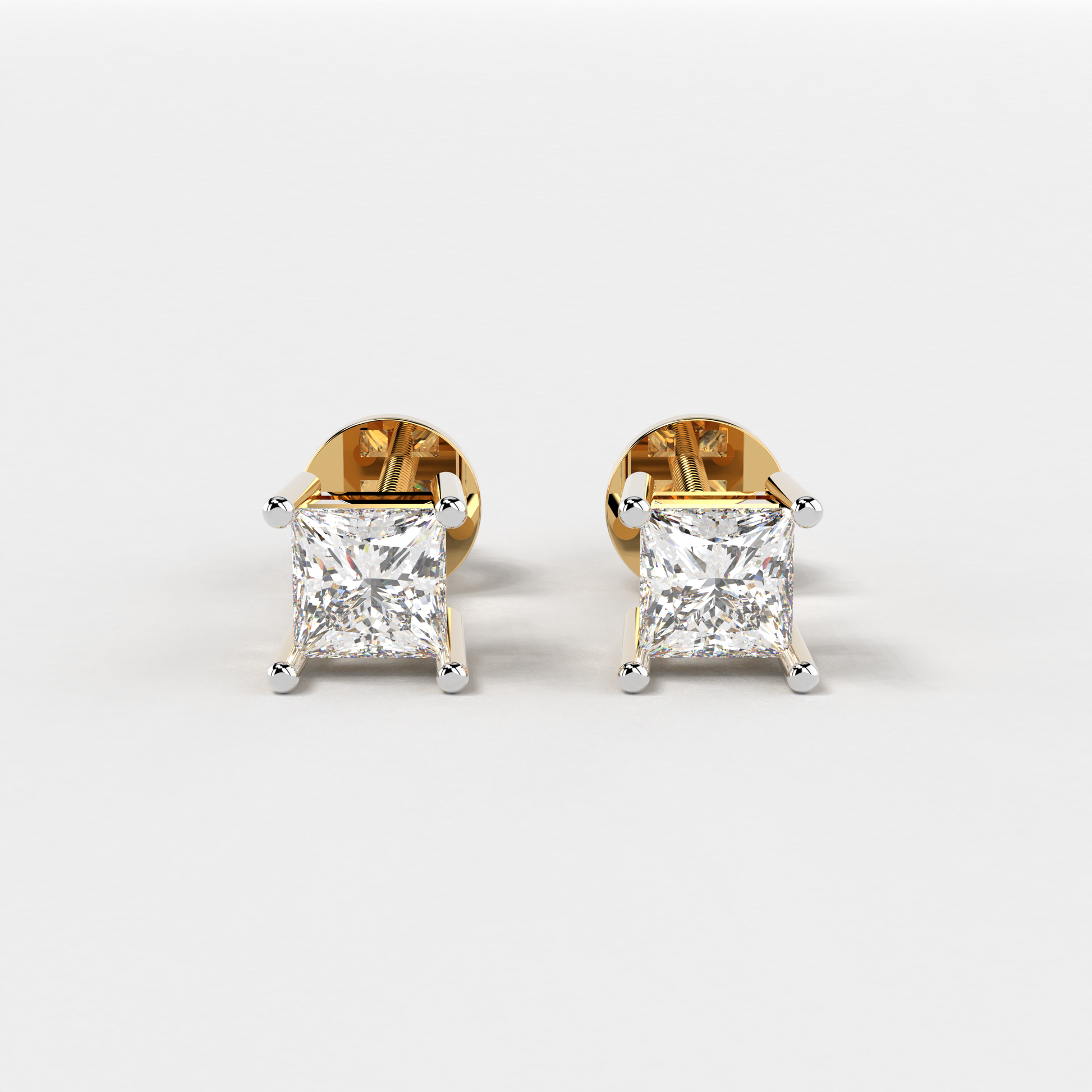 Indulge in the timeless elegance of these 'Classic Princess Diamond Studs', a masterpiece meticulously crafted by Elior Jewel. These exquisite earrings showcase a pair of dazzling princess-cut diamonds, totaling 0.60ct in weight approximately. Their exceptional clarity and brilliance create a captivating display of light and sparkle that will enhance any ensemble. These earrings exude a sophisticated charm that is both classic and contemporary. The princess cut, with its sharp lines and modern silhouette, adds a touch of geometric allure, while the four-prong setting allows the diamonds to shine with maximum brilliance.The simple yet elegant design of these earrings makes them a versatile accessory for any occasion. Whether you're dressing up for a special event or adding a touch of glamour to your everyday look, these stud earrings will effortlessly elevate your style.Crafted with meticulous attention to detail and unwavering commitment to quality, these 'Classic Princess Diamond Studs' by Elior Jewel are more than just an accessory; they are a symbol of enduring beauty and sophistication.