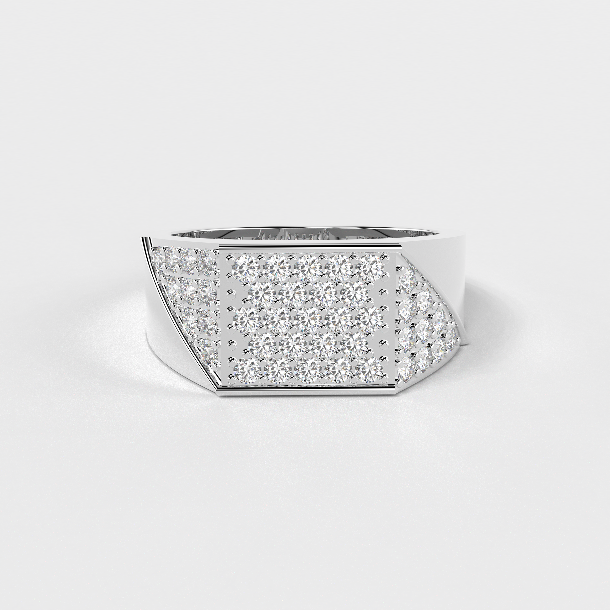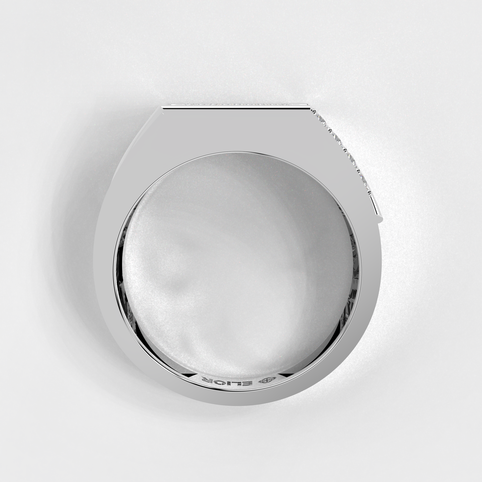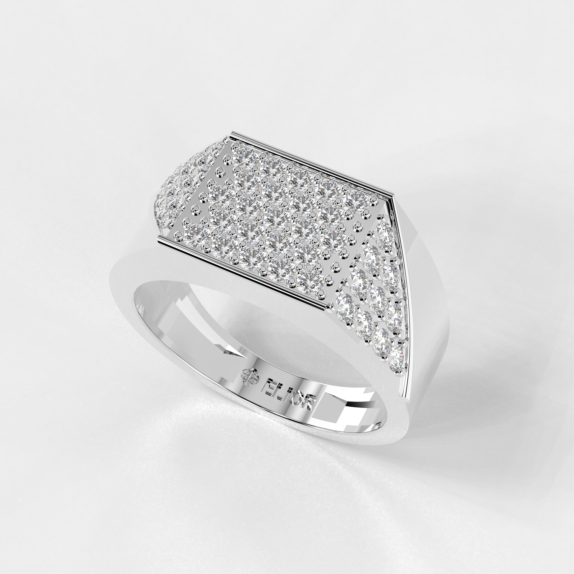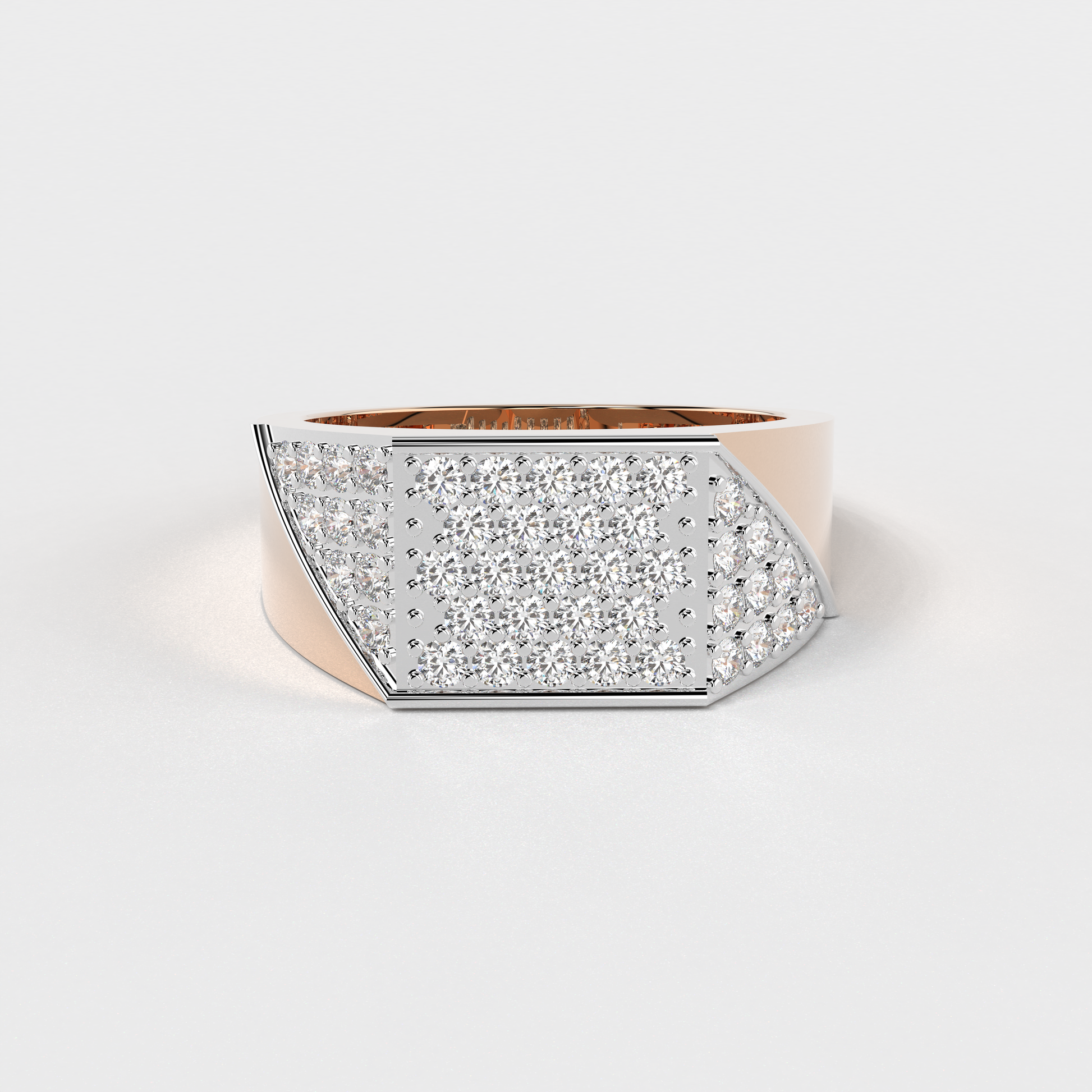 Embrace modern sophistication with the "Geometric Majesty" Diamond Ring, a masterpiece meticulously crafted by Elior Jewel. This striking ring features a bold and minimalist design, showcasing a captivating array of round brilliant-cut diamonds meticulously set in a pave setting to create a stunning geometric pattern. The diamonds, totaling 1.075 carats in weight with 43 carefully placed stones, are expertly showcased to maximize their brilliance and fire, creating a mesmerizing display of light that will catch the eye from every angle.the ring's band boasts a sleek and substantial silhouette, adding a touch of modern luxury to this classic piece. The smooth, polished surface of the rose gold complements the diamonds' fiery sparkle, creating a harmonious balance between contemporary design and timeless elegance.Whether worn as a statement piece, a wedding band, or an anniversary band, the Geometric Majesty Diamond Ring is sure to become a cherished addition to any man's jewelry collection. Its versatile design and exquisite craftsmanship make it a perfect choice for the modern gentleman who appreciates both style and substance.