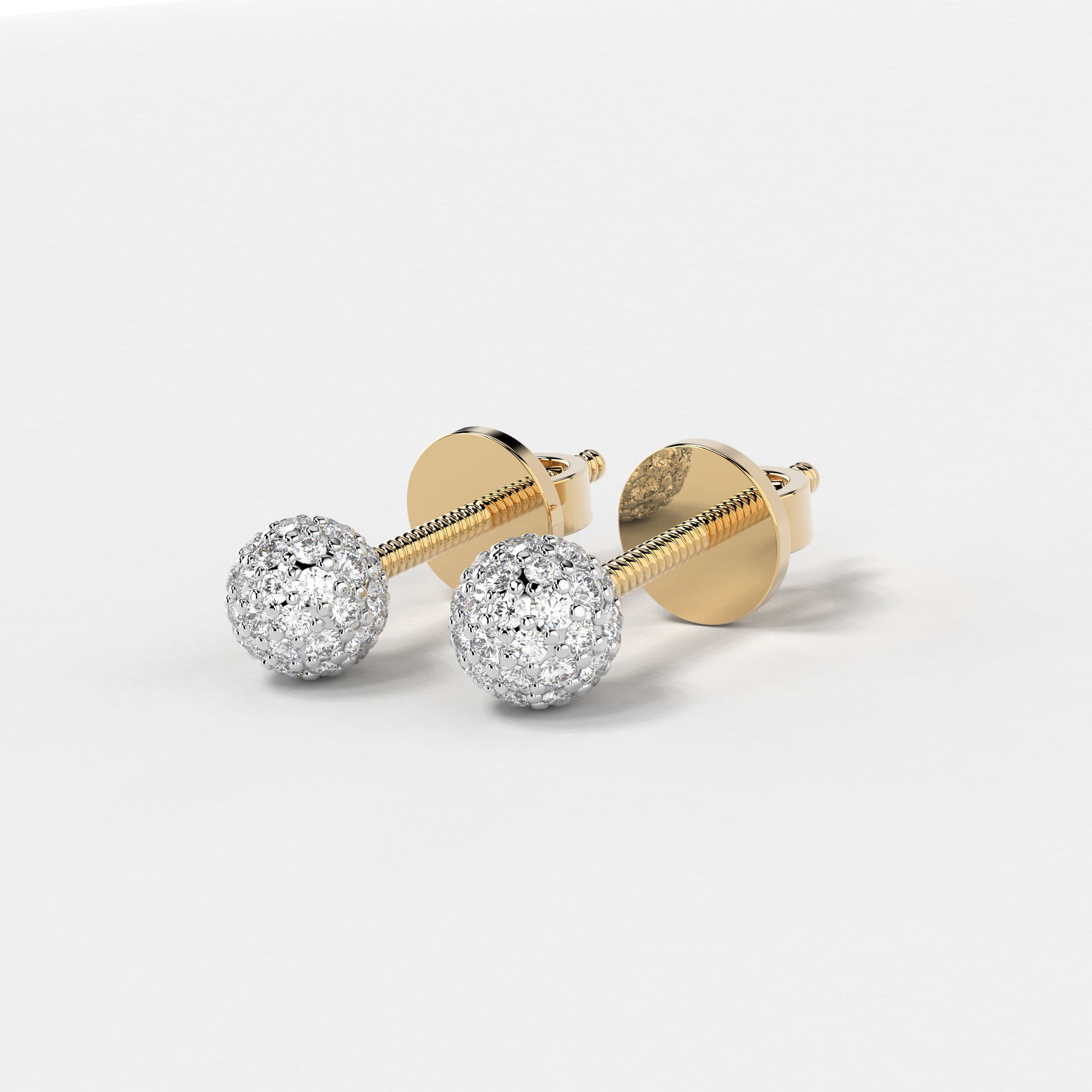 Embrace the timeless allure of these exquisite 'Glimmering Diamond Studs', a masterpiece meticulously crafted by Elior Jewel. Fashioned in your choice of lustrous gold, these earrings feature a captivating floral cluster design that exudes sophistication and charm. Each earring showcases a stunning arrangement of round brilliant-cut diamonds, expertly pave set to create a dazzling display of light and sparkle. With 86 meticulously placed diamonds, totaling 0.42 carats approximately in weight, these earrings capture and reflect light from every angle, adding a touch of glamour to any ensemble. The earrings feature a unique combination of two different diamond sizes, creating a dimensional and eye-catching effect. The larger central diamond is surrounded by a halo of smaller diamonds, enhancing its brilliance and creating a captivating focal point. Crafted with meticulous attention to detail and unwavering commitment to quality, these 'Glimmering Diamond Studs' are more than just an accessory; they are a symbol of enduring beauty and timeless elegance. Elevate your jewelry collection with these exquisite earrings, a testament to the enduring beauty of diamonds and the artistry of Elior Jewel. Let the 'Glimmering Diamond Studs' be your go-to accessory for effortless elegance and timeless style, adding a touch of sparkle to every occasion.