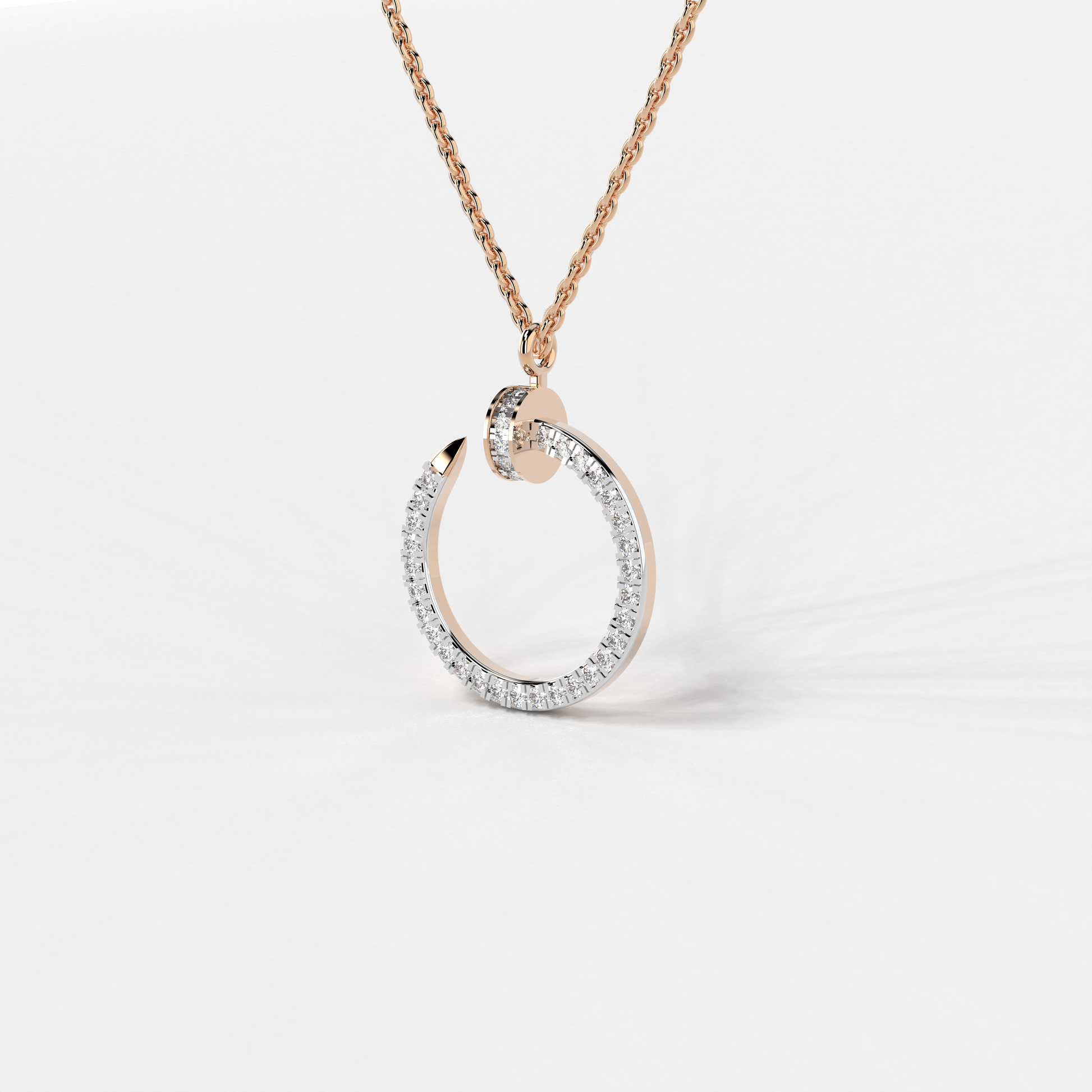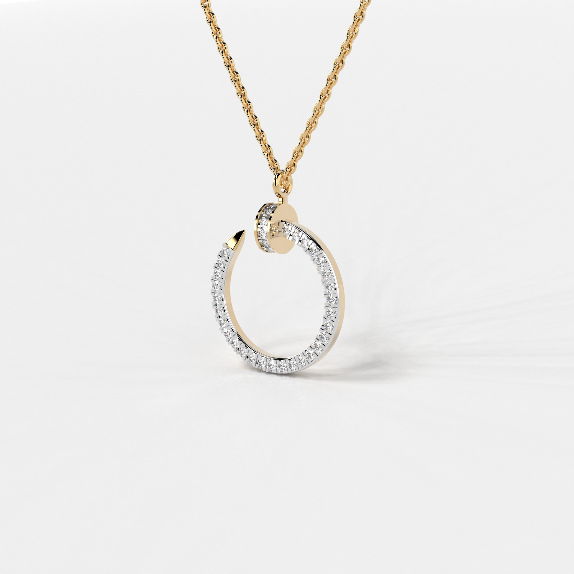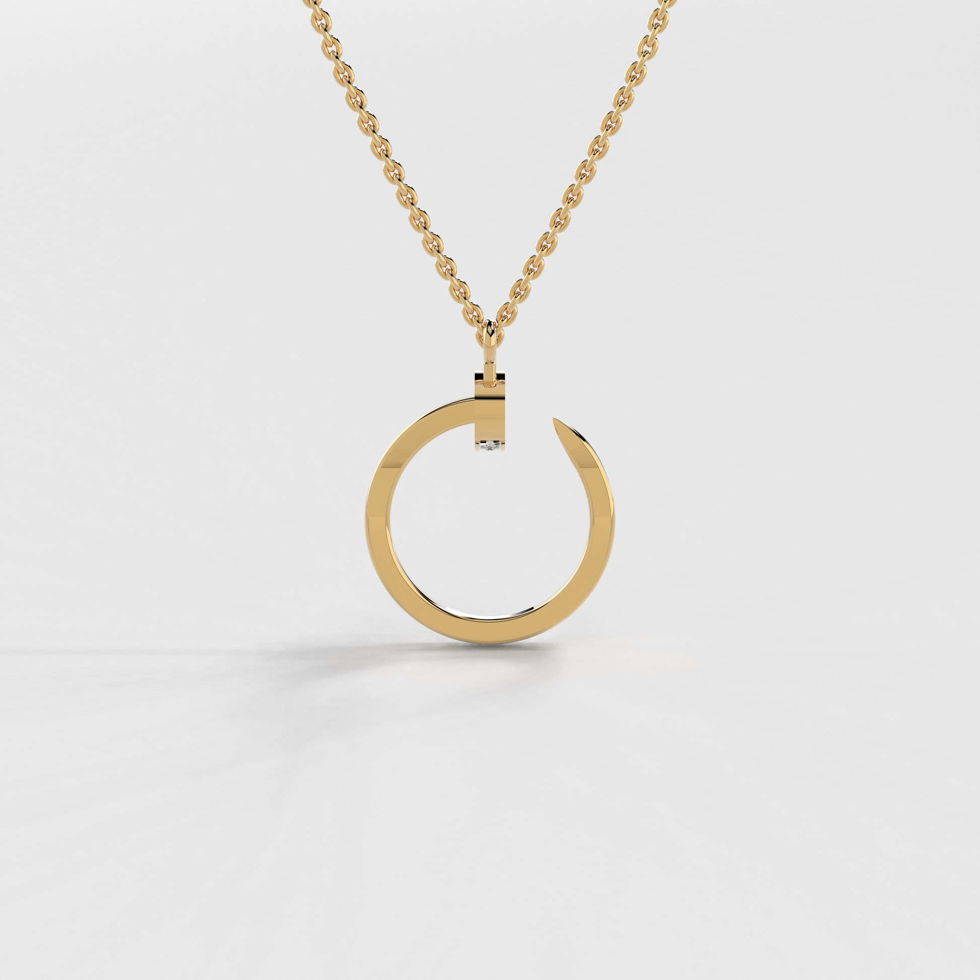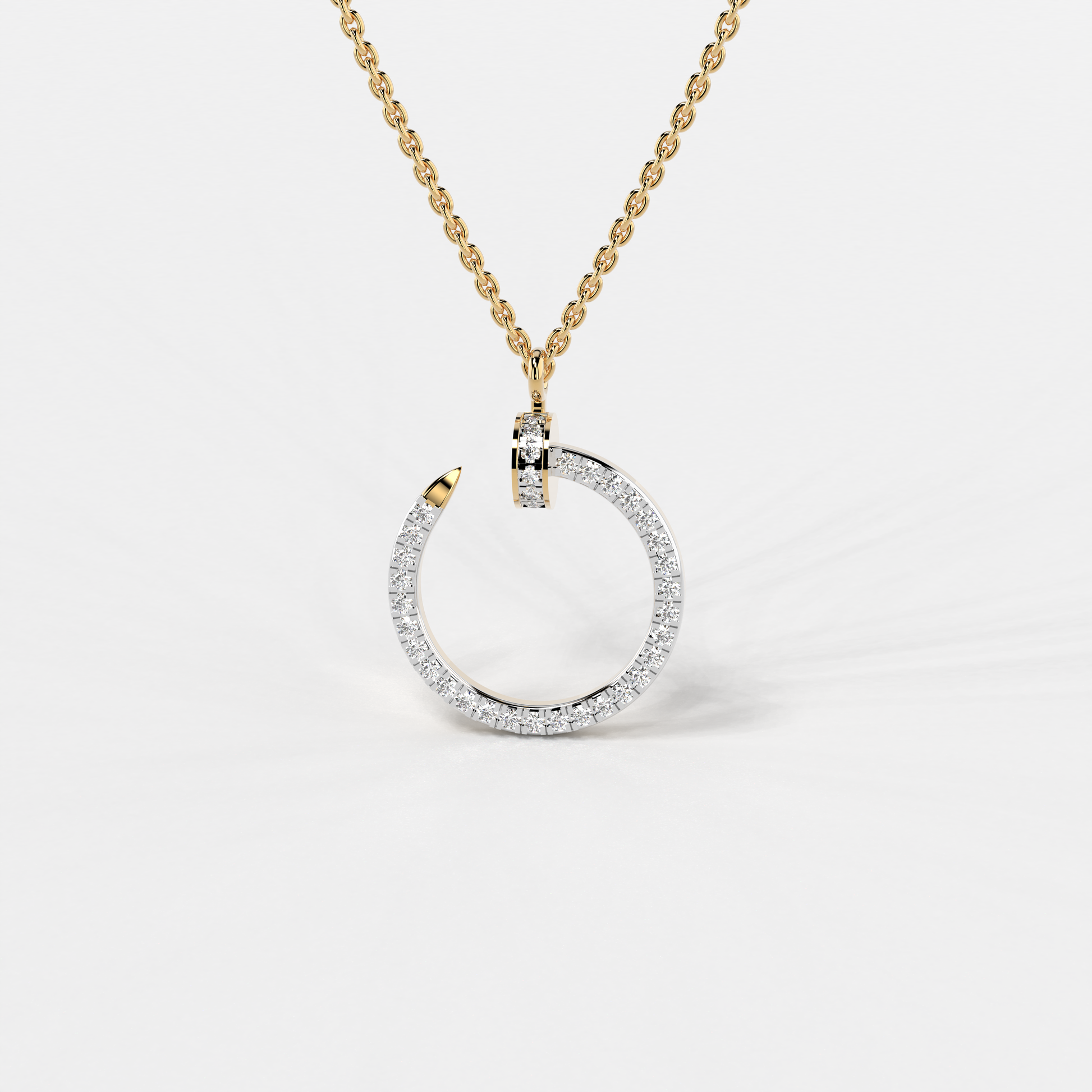Embrace the minimalist charm with the "Lunar Sheen Charm Pendant" – a sleek and sophisticated addition to Elior Jewel's refined collection. Crafted with precision, this pendant is the epitome of understated elegance. The pendant features a crescent shape, meticulously lined with 37 round-cut diamonds that collectively weigh 0.49 carats approximately. Each diamond, carefully chosen for its brilliance, is set against the golden curve to reflect light beautifully, much like the first delicate slivers of moonlight. The pendant's diameter measures an ideal 22 mm, perfect for a subtle yet significant presence. The "Lunar Sheen Charm Pendant" marries lightweight wearability with the prestige of precious metals. Suspended on a matching gold chain, this pendant is a versatile piece that promises to transition seamlessly from day wear to evening sophistication, illuminating the neckline with its serene glow.