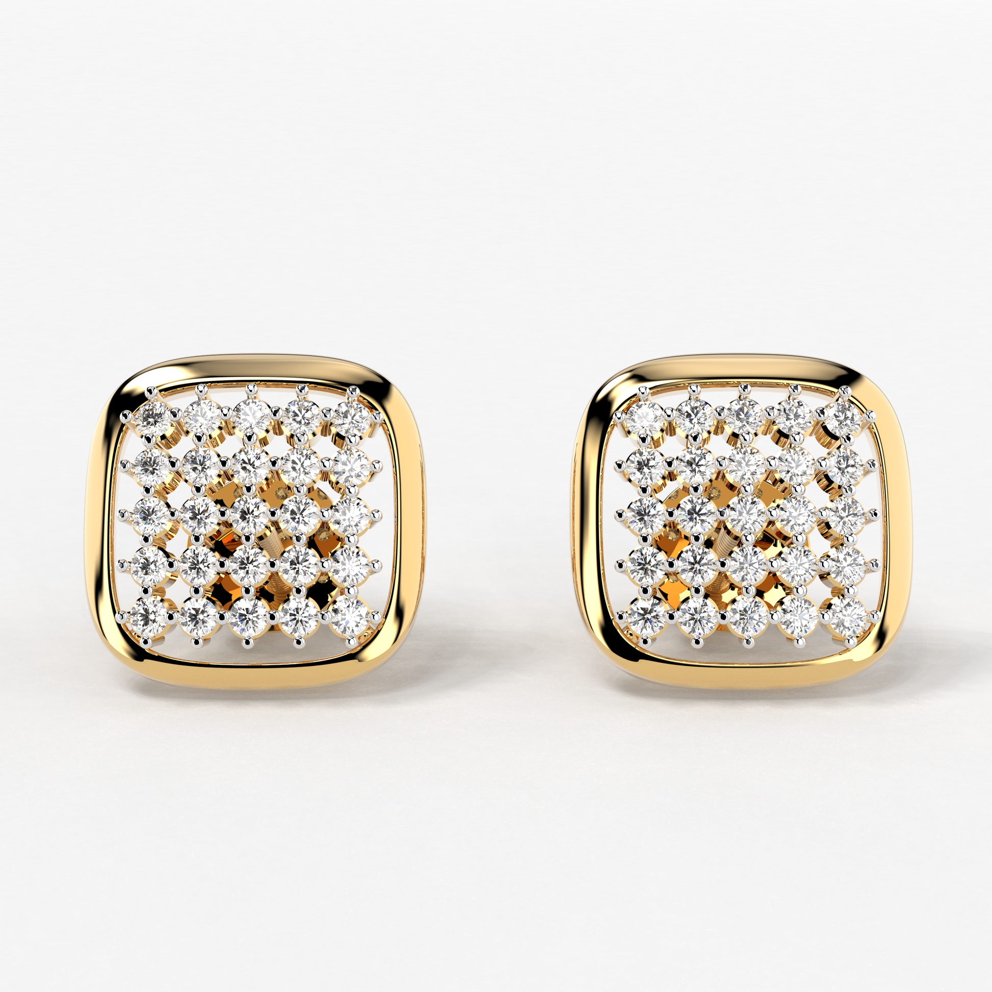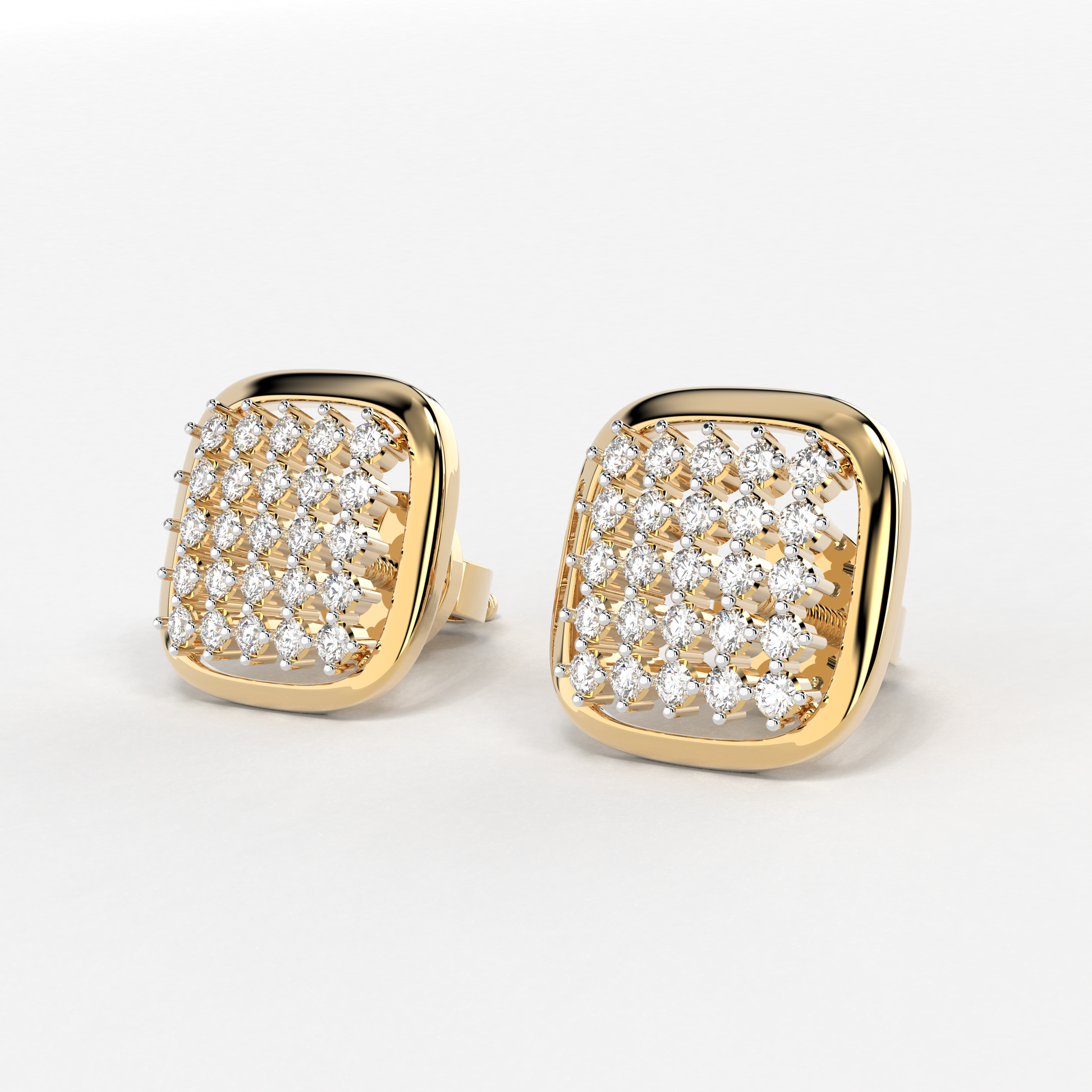 Unleash your inner rebel with these exquisite 'Luxe Pave Earrings', a masterpiece meticulously crafted by Elior Jewel. Fashioned in your choice of lustrous gold, these earrings boast a bold square design adorned with shimmering pavé diamonds that exude edgy sophistication and unapologetic charm. Each earring showcases a stunning arrangement of 50 round brilliant-cut diamonds, meticulously set in a pavé pattern that maximizes their brilliance and fire. With a total diamond weight of 0.50 carats approximately, these earrings create a dazzling display of light and sparkle that will demand attention from every angle. The clean lines and minimalist design of these earrings juxtapose beautifully with the rebellious spirit of the diamond setting, creating a versatile accessory that can be dressed up or down. Whether you're rocking out at a concert or adding a touch of edgy glamour to your everyday look, these stud earrings will effortlessly elevate your style with their bold statement. Crafted with meticulous attention to detail and unwavering commitment to quality, these 'Luxe Pavé Earrings' by Elior Jewel are more than just an accessory; they are a symbol of self-expression and unapologetic individuality. Elevate your jewelry collection with these exquisite earrings, a testament to the enduring beauty of diamonds and the artistry of Elior Jewel. Let the 'Luxe Pavé Earrings' be your statement piece, a symbol of your fearless spirit and unique style.