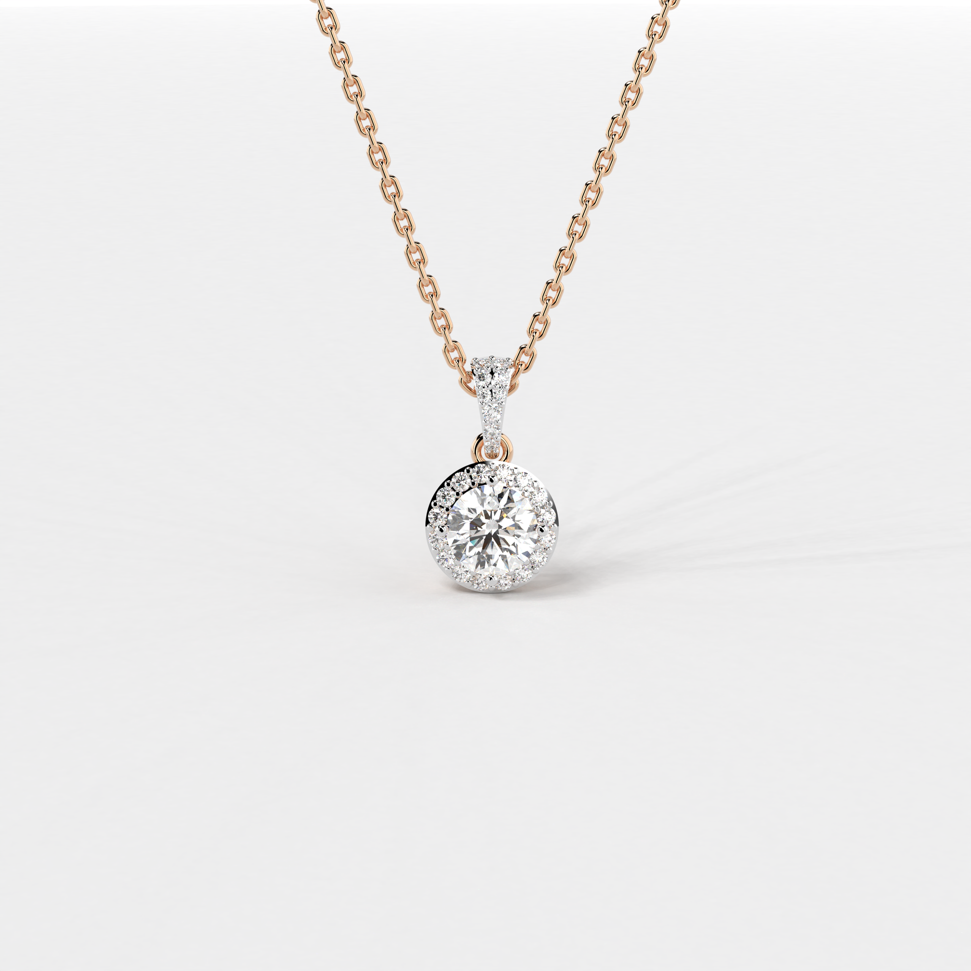 The "Luxe Radiance Pendant" from Elior Jewel merges modern sophistication with timeless appeal. At the heart of this magnificent piece lies a captivating round-cut diamond, weighing a full 1.00 carat approximately, radiating unmatched brilliance. This central diamond is encircled by a halo of smaller diamonds, totaling 25 additional stones with a combined weight of 0.26 carats, enhancing the pendant's luminous effect. The pendant, measuring 17.00 mm in height, is designed to catch and reflect light from every angle, ensuring that it stands out with an elegant glow. The "Luxe Radiance Pendant" is a masterpiece of jewelry design, offering a perfect blend of modern elegance and classic beauty. It is an ideal choice for those seeking a significant piece that promises to be as timeless as it is beautiful.