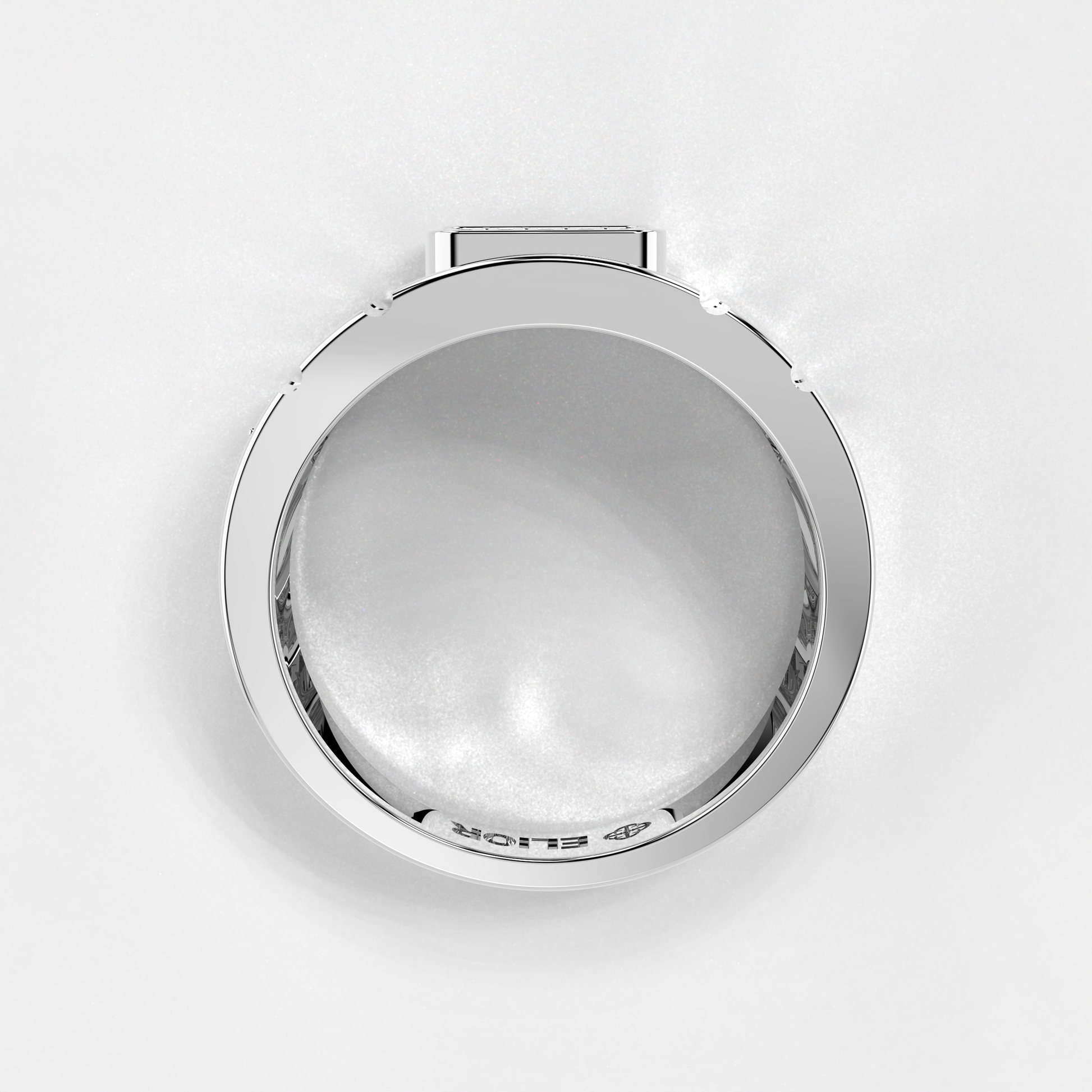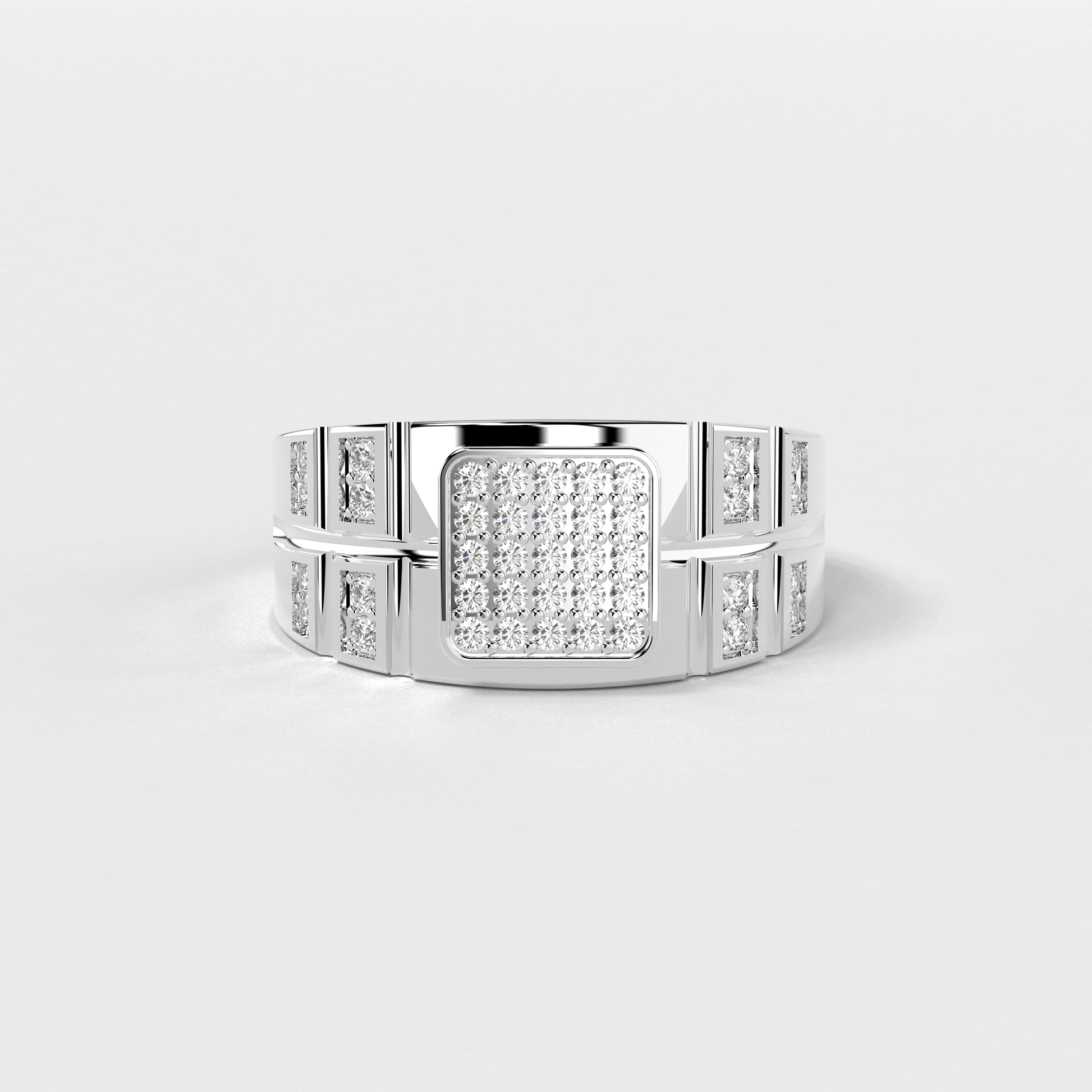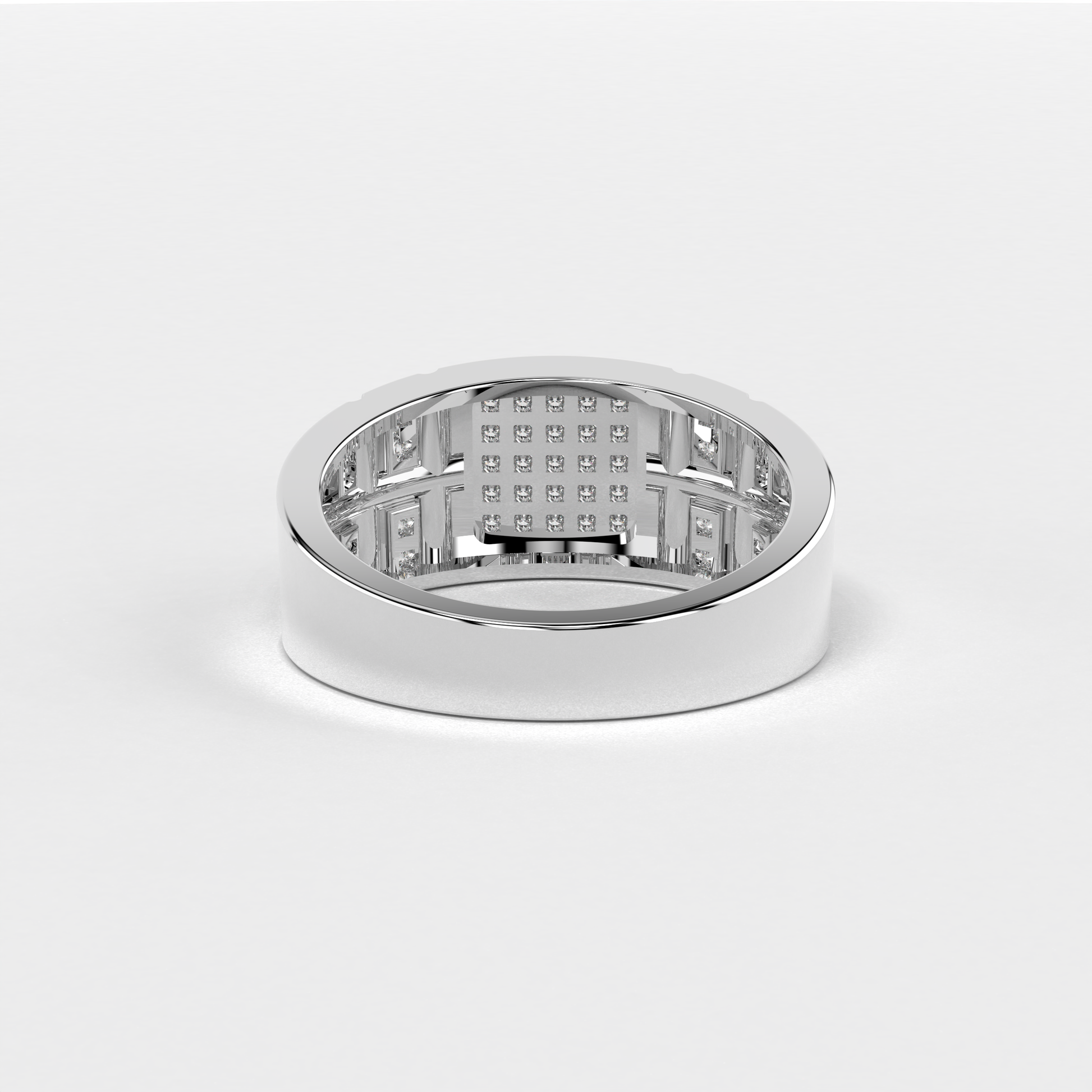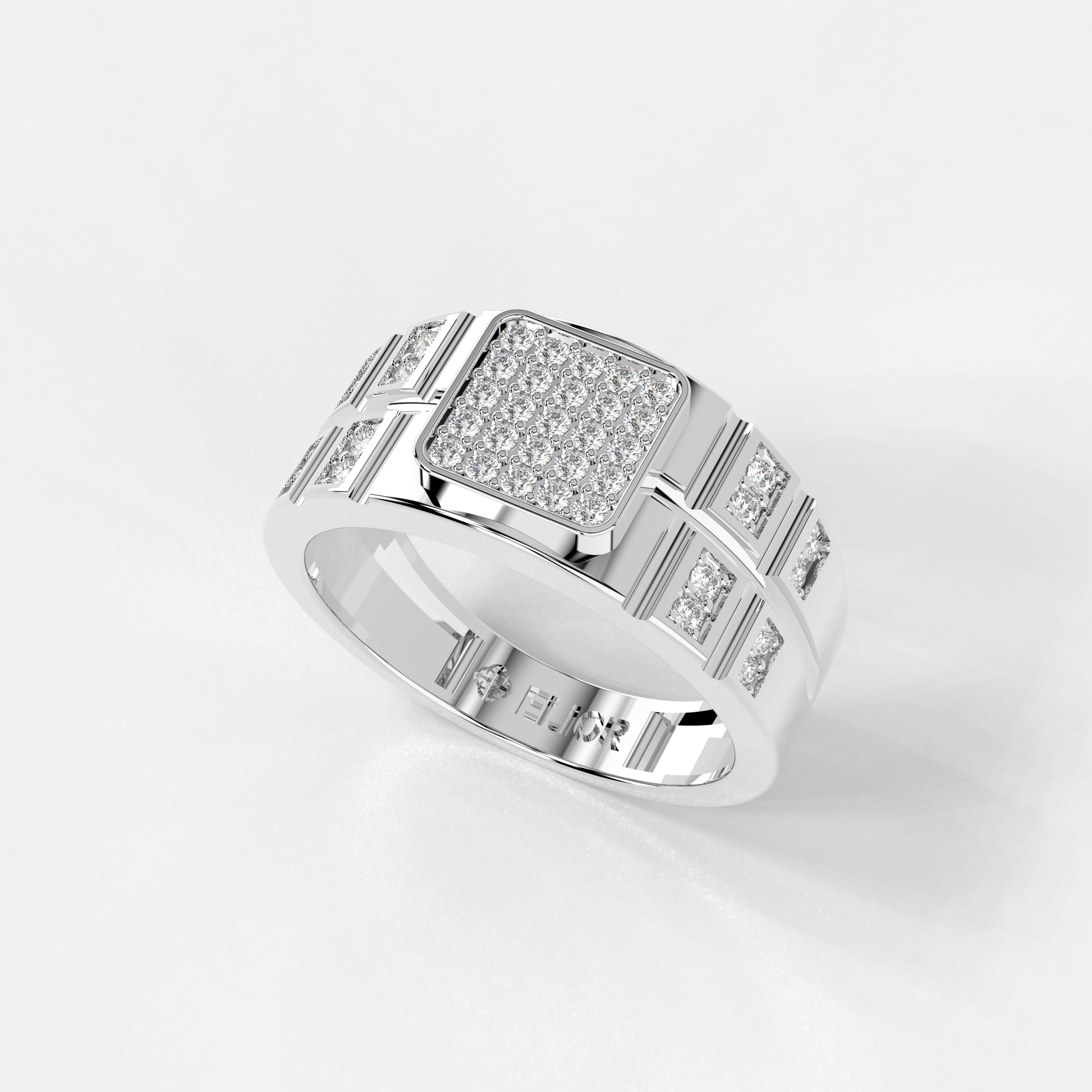 Embrace modern sophistication with the "Metropolitan Mosaic" Diamond Ring, a masterpiece meticulously crafted by Elior Jewel. This striking ring features a bold and geometric design, showcasing a captivating array of round brilliant-cut diamonds meticulously set in a pave and channel setting to create a stunning mosaic pattern.The ring boasts three distinct sections, each adorned with sparkling diamonds. The central section features a pave-set square cluster of diamonds, radiating outwards like a brilliant sunburst. Flanking this centerpiece are two rectangular sections, each showcasing a channel-set row of diamonds that add a touch of linear elegance to the design. The diamonds, totaling 0.427 carats in weight, are expertly showcased to maximize their brilliance and fire, creating a mesmerizing display of light that will catch the eye from every angle.the ring's band boasts a sleek and substantial silhouette, adding a touch of modern luxury to this classic piece. The smooth, polished surface of the rose gold complements the diamonds' fiery sparkle, creating a harmonious balance between contemporary design and timeless elegance.Whether worn as a statement piece, a wedding band, or an anniversary band, the Metropolitan Mosaic Diamond Ring is sure to become a cherished addition to any man's jewelry collection. Its versatile design and exquisite craftsmanship make it a perfect choice for the modern gentleman who appreciates both style and substance.