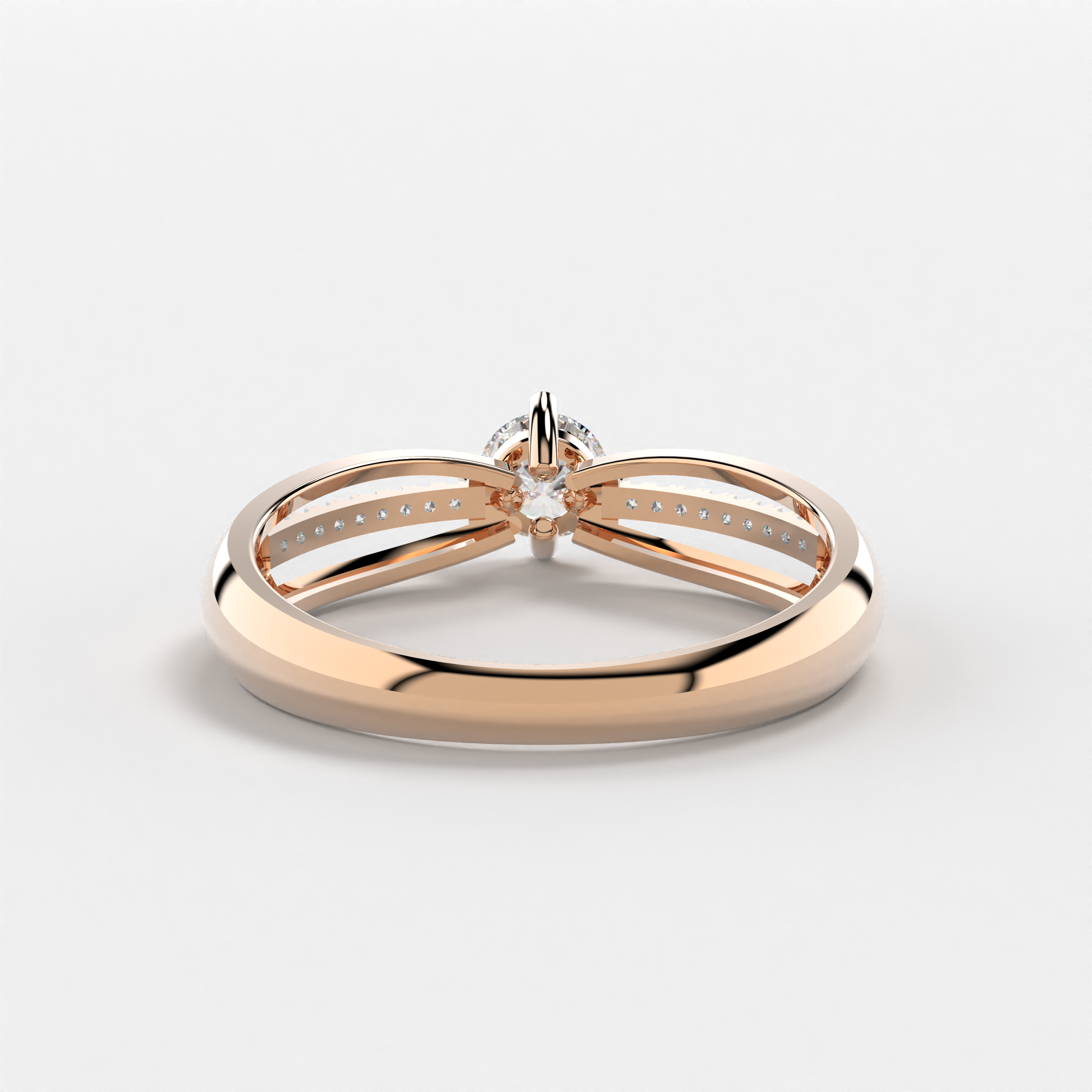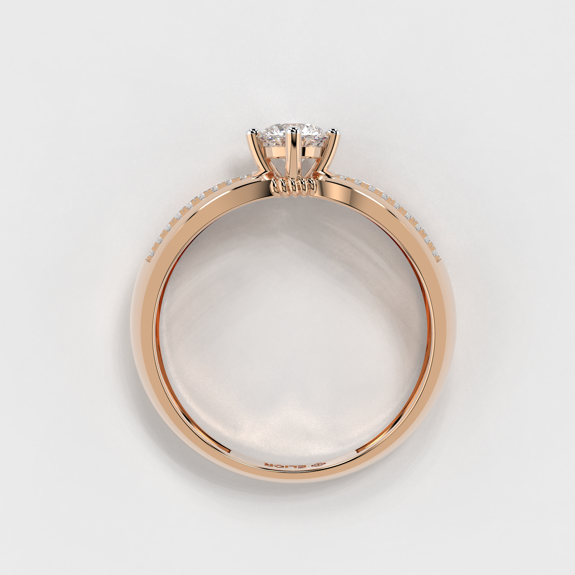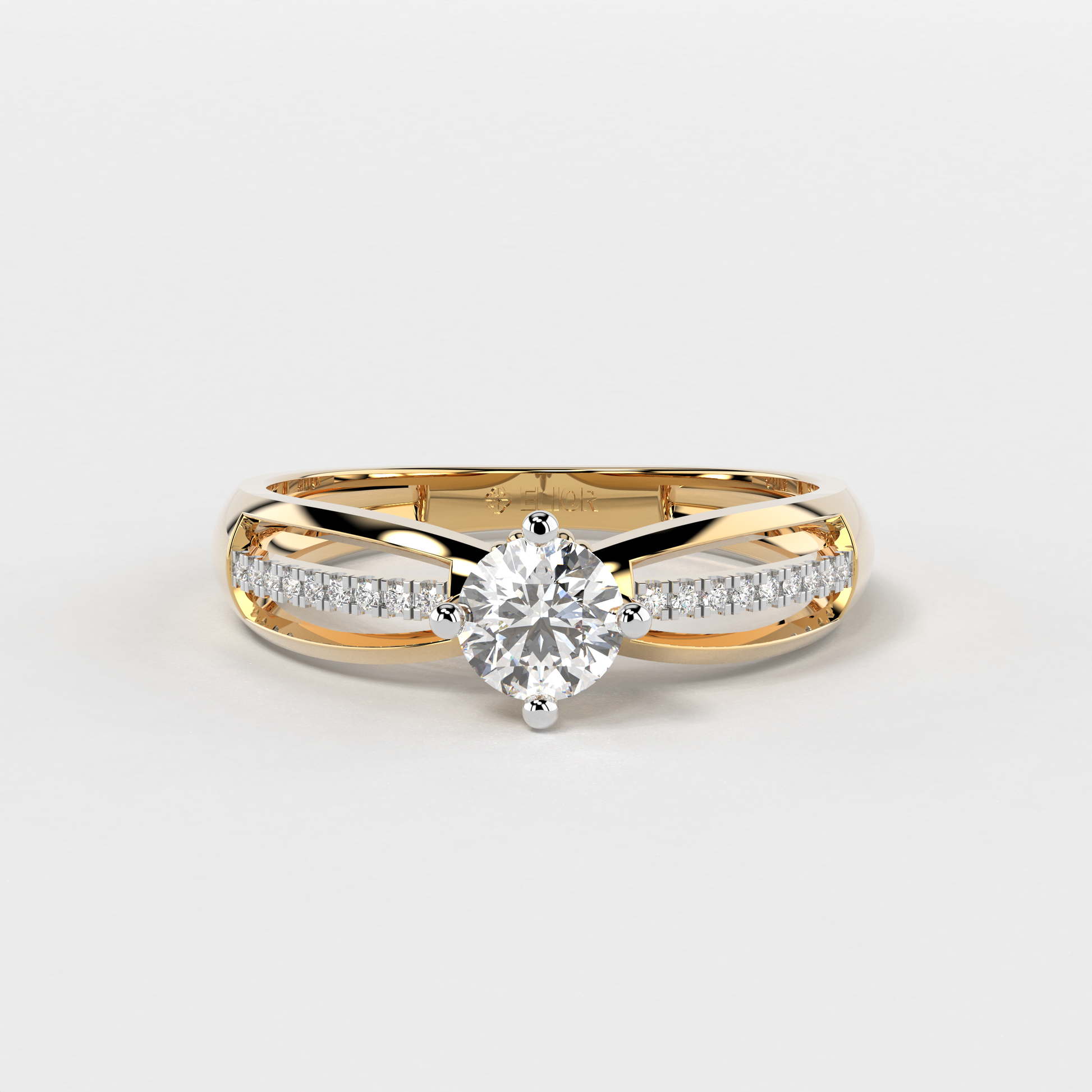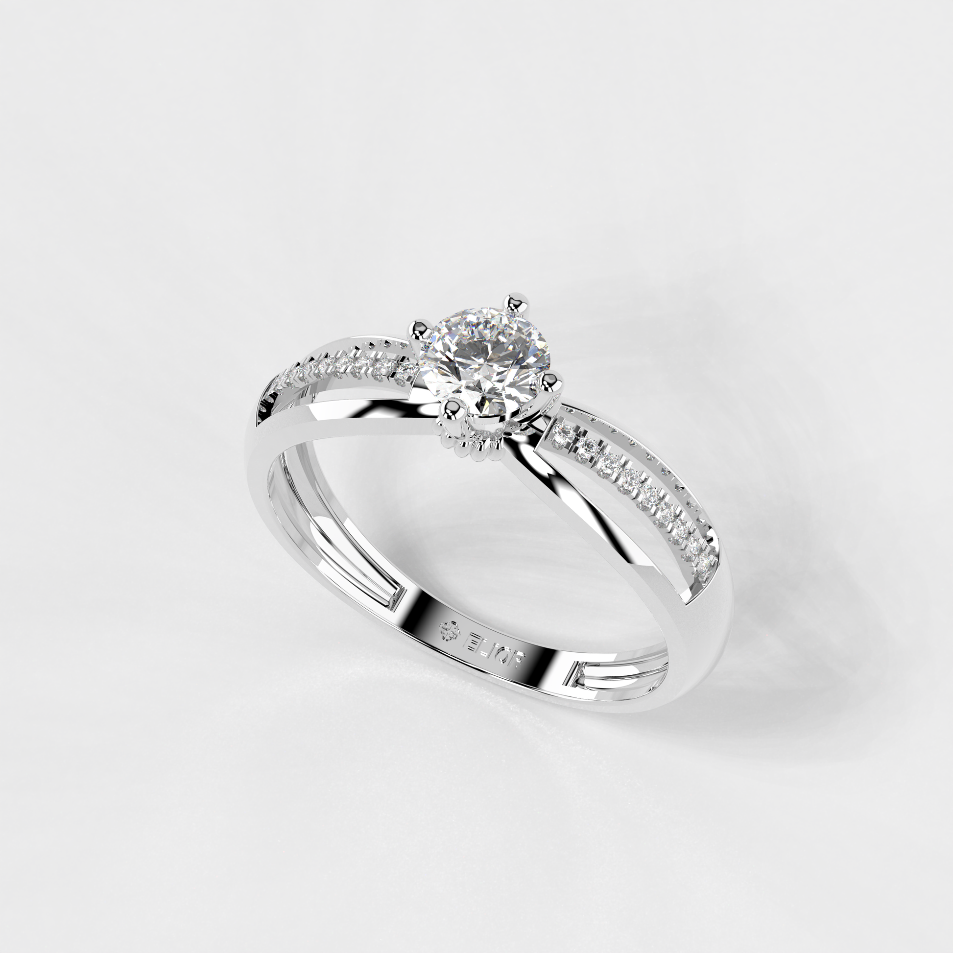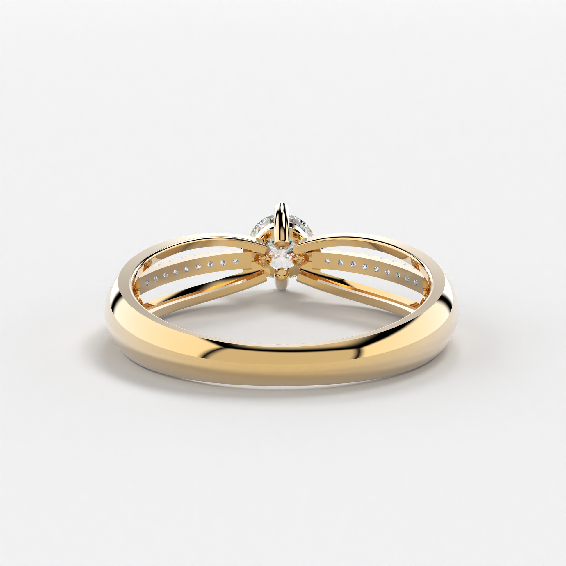 The 'Solitaire Spark Ring' by Elior Jewel is a testament to refined taste. It boasts a stunning central round-cut diamond that is both bold and classic, a gemstone that commands attention with its 0.34 carats of radiant luster. The band, lined with 18 smaller diamonds totaling 0.06 carats approximately, sweeps up elegantly to cradle the centerpiece. This design achieves a delicate balance between understated sophistication and conspicuous glamour, making the 'Solitaire Spark Ring' a perfect choice for those who seek to make a statement of elegance in their every gesture.