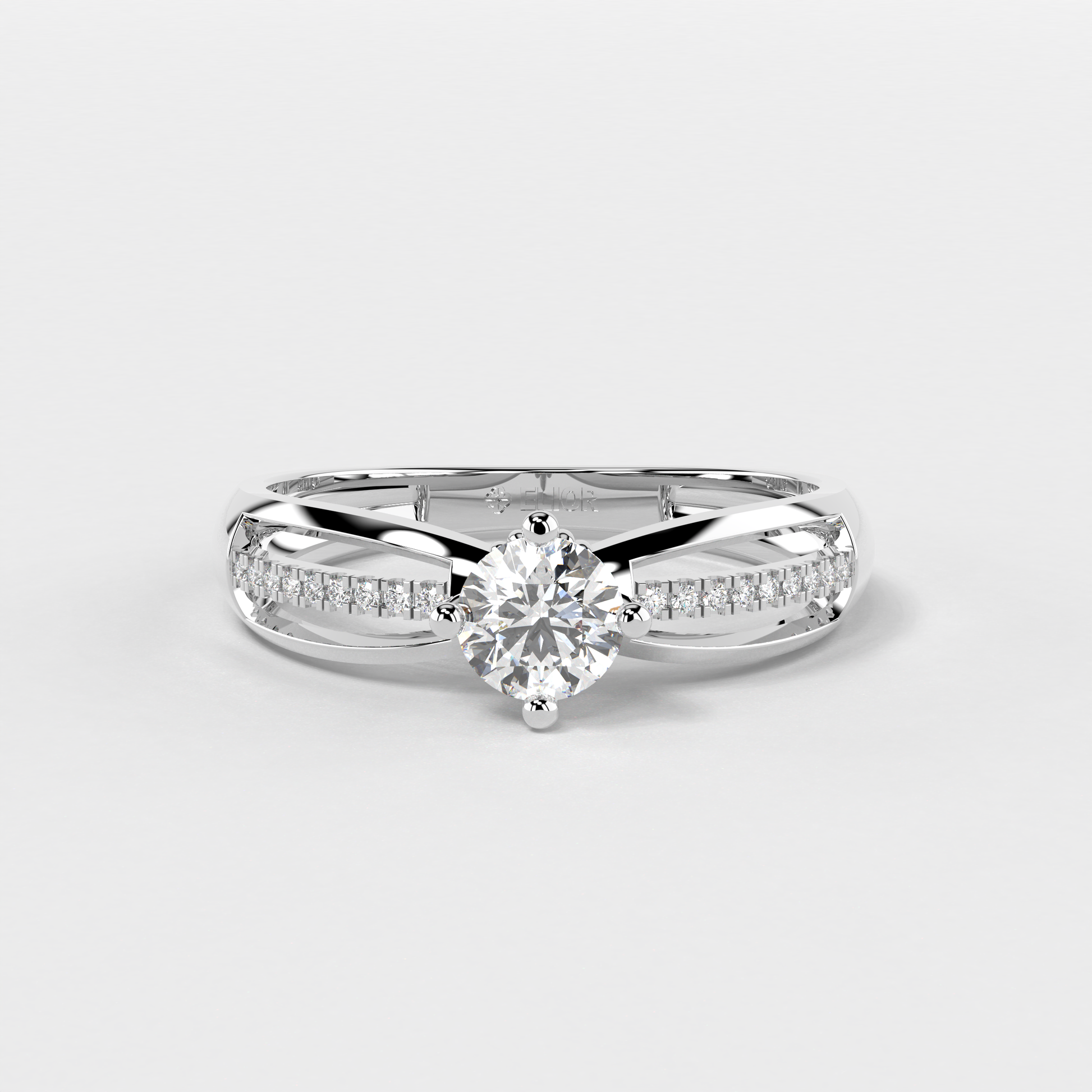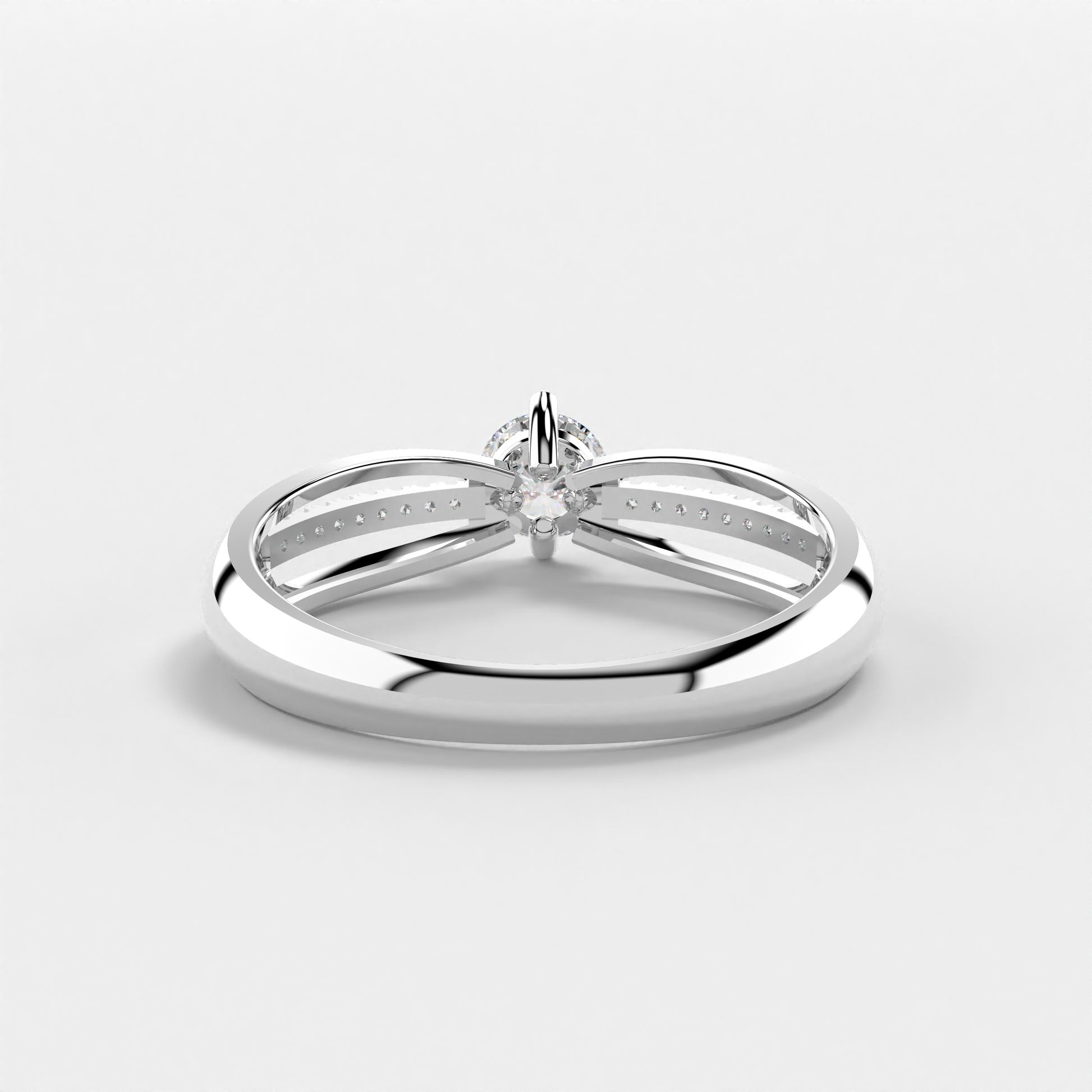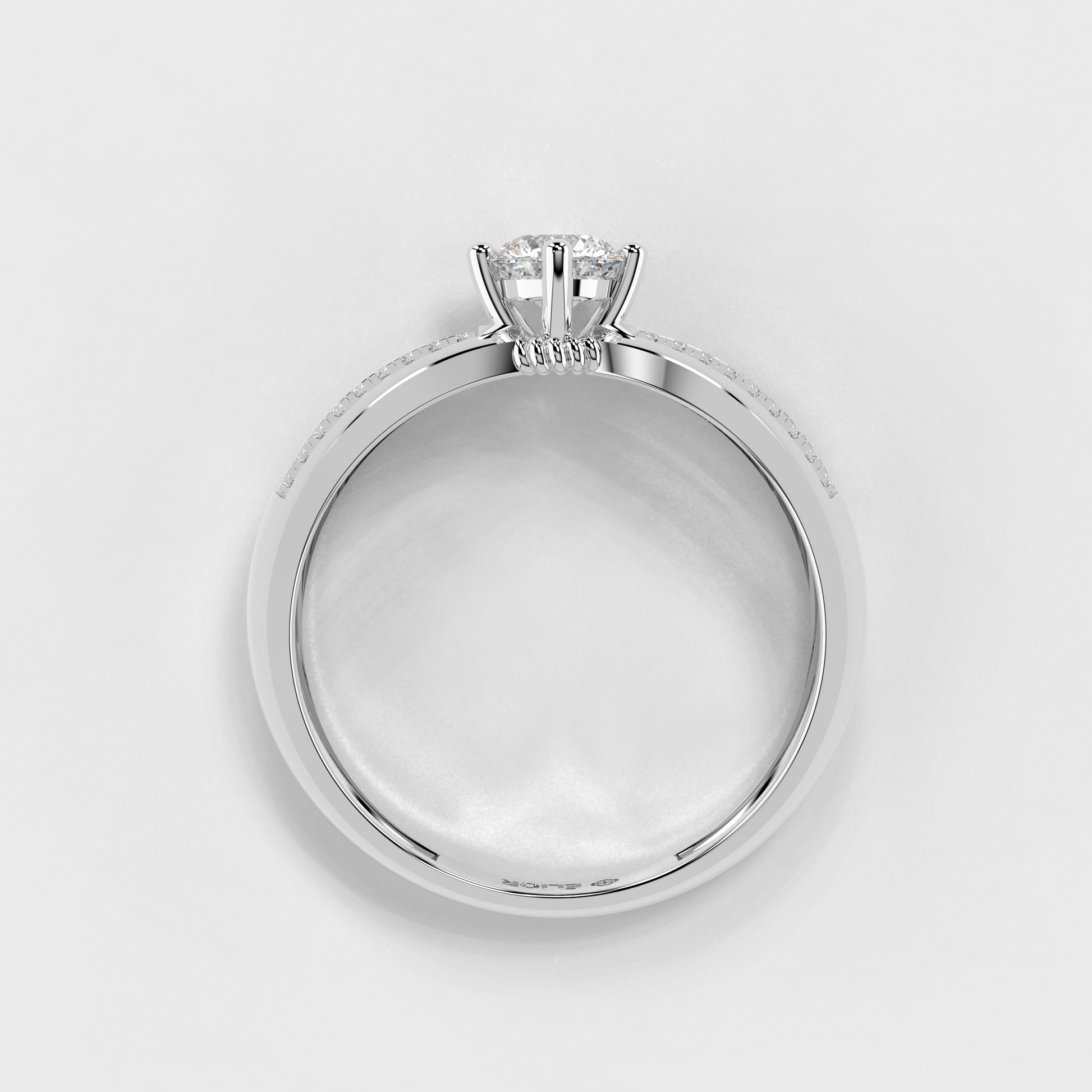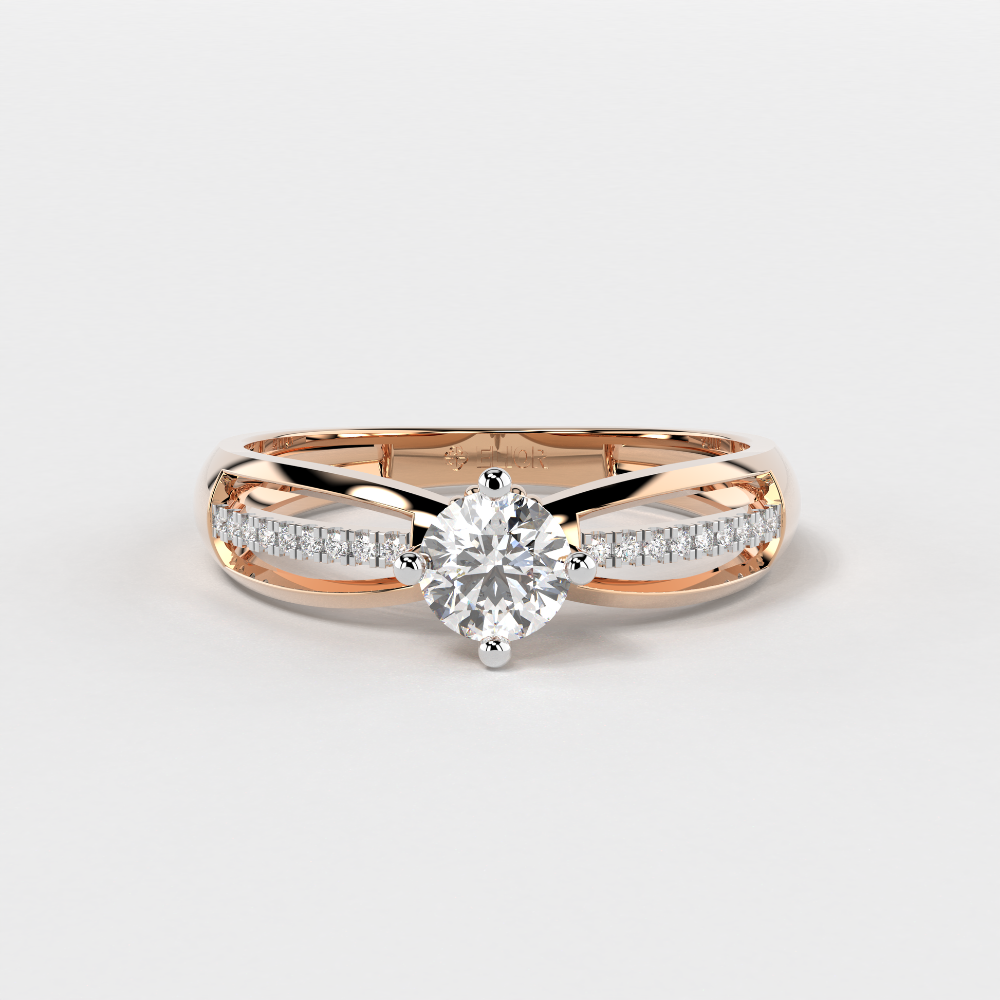 The 'Solitaire Spark Ring' by Elior Jewel is a testament to refined taste. It boasts a stunning central round-cut diamond that is both bold and classic, a gemstone that commands attention with its 0.34 carats of radiant luster. The band, lined with 18 smaller diamonds totaling 0.06 carats approximately, sweeps up elegantly to cradle the centerpiece. This design achieves a delicate balance between understated sophistication and conspicuous glamour, making the 'Solitaire Spark Ring' a perfect choice for those who seek to make a statement of elegance in their every gesture.