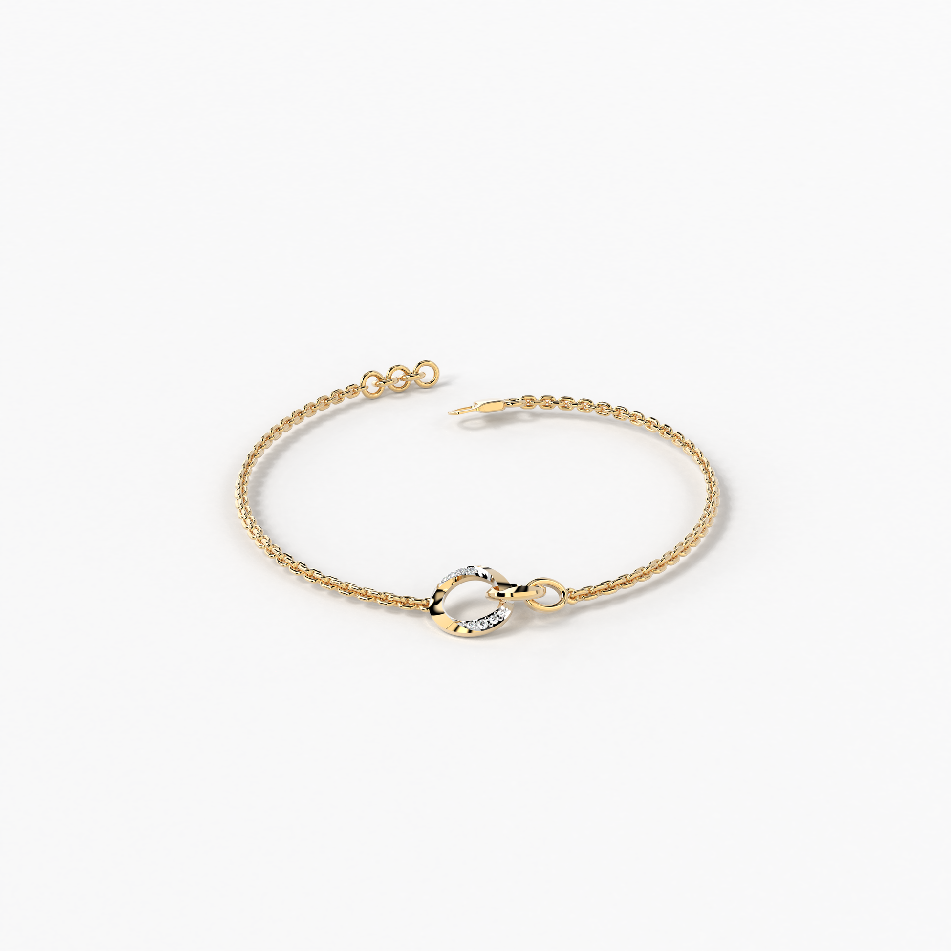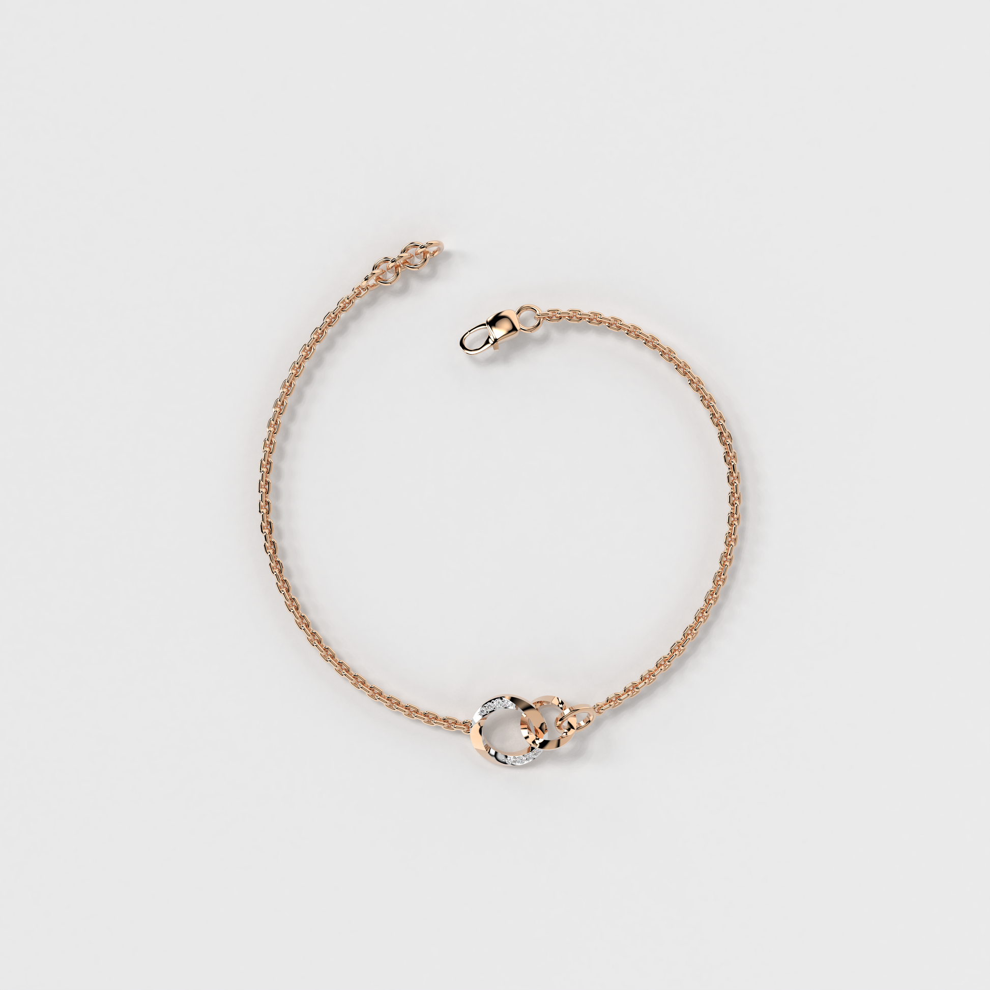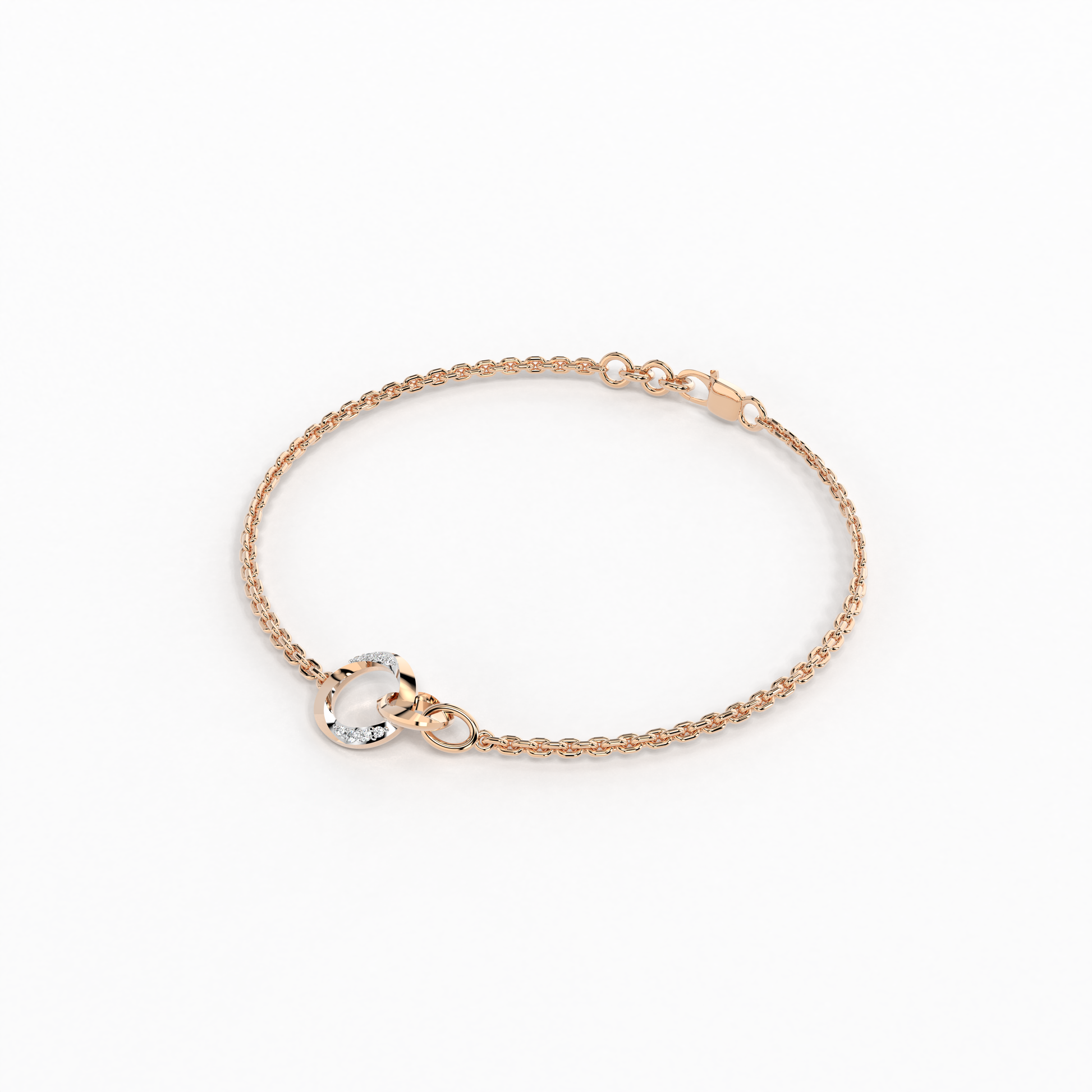 The "Spiral Grace Bracelet" from Elior Jewel embodies sophistication with a twist. Expertly crafted for those who desire a touch of added luxury, this bracelet features a unique spiral design that gracefully encircles the wrist, symbolizing continuity and timeless elegance. At the center of this exquisite piece is a delicately twisted circle, subtly enhanced with a sprinkle of diamonds. These gems are meticulously set to catch the light from every angle, adding a discreet yet dazzling sparkle that complements the soft glow of the rose gold. The "Spiral Grace Bracelet" offers a comfortable fit for everyday wear while maintaining an air of refined beauty. It is perfect for those who appreciate minimalist design with an elegant twist, making it a versatile addition to any jewelry collection. Whether worn alone or layered with other pieces, this bracelet is sure to enchant and captivate.