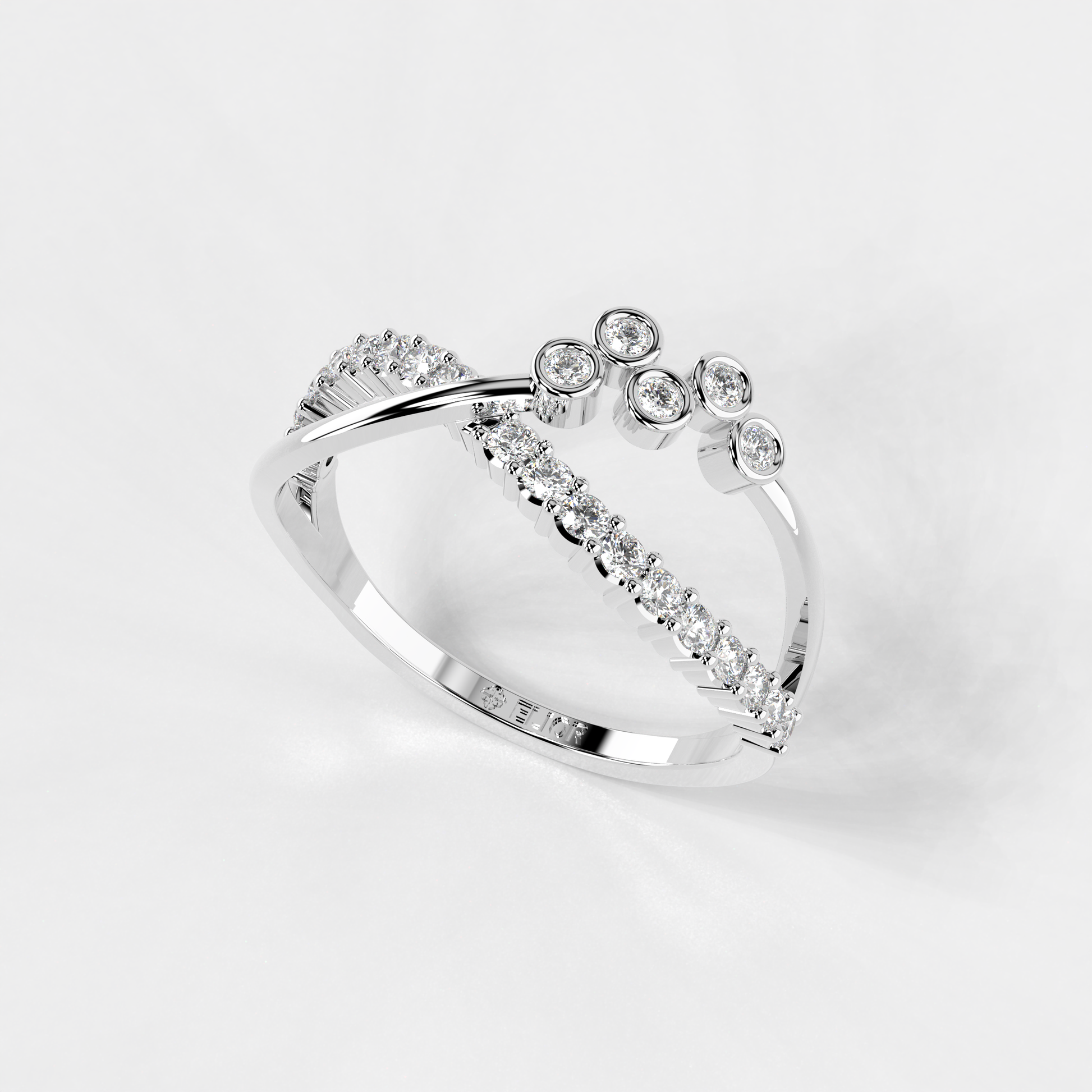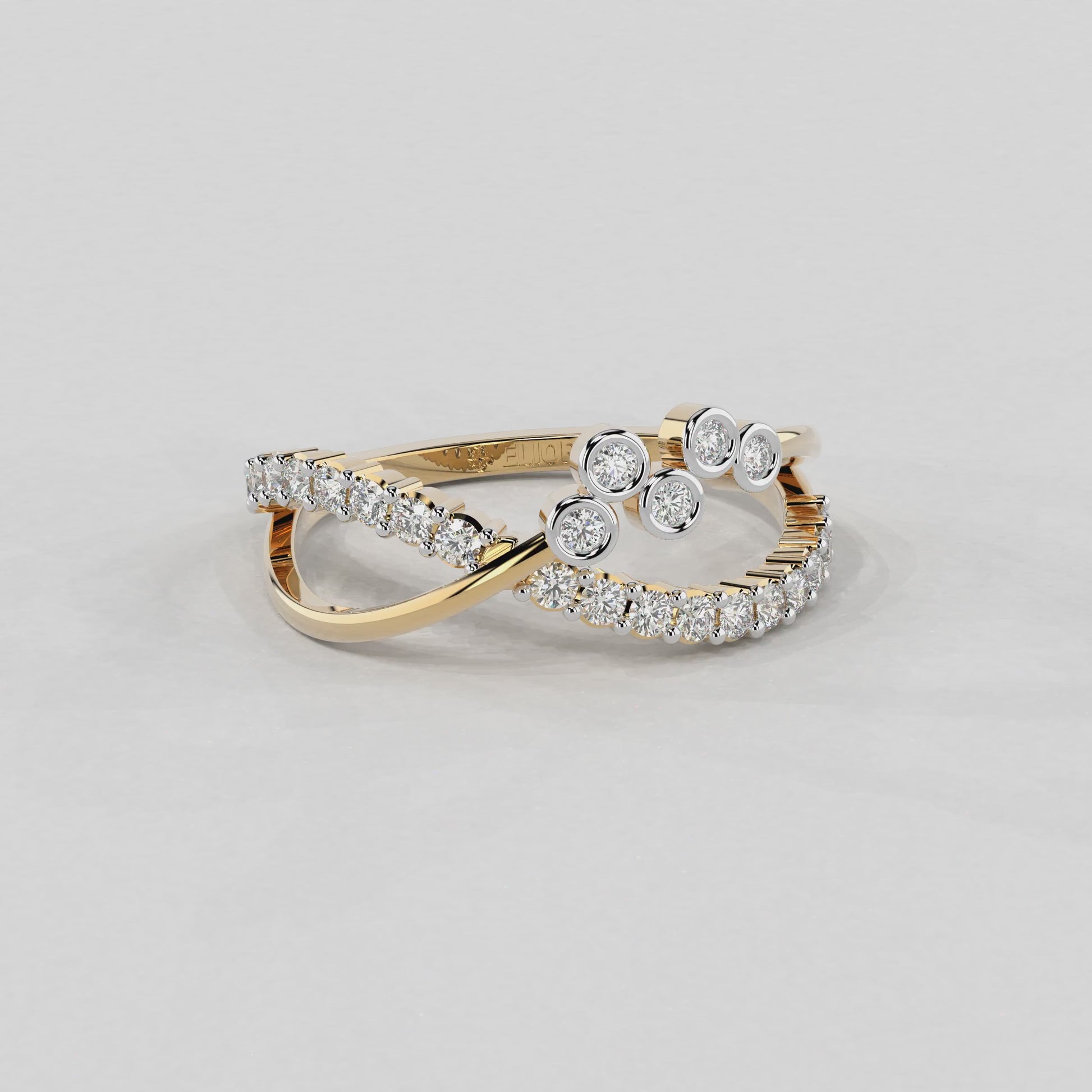 Discover the 'Spiral Radiance Ring' – a bold statement piece by Elior Jewel, where edgy design intertwines with the timeless allure of diamonds. The band spirals around the finger, featuring a paved path of 23 diamonds, leading to a constellation of round-cut gems that collectively total 0.31 carats approximately. This ring is an embodiment of avant-garde elegance, designed for the modern individual who dares to stand out. The 'Spiral Radiance Ring' is not just an accessory; it's a declaration of confidence and style.