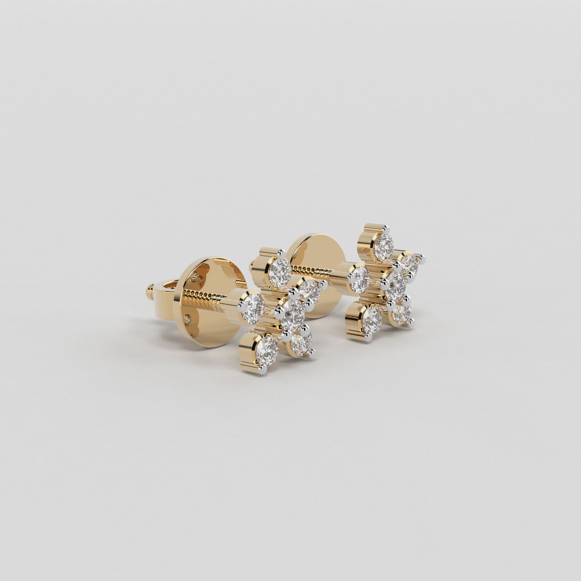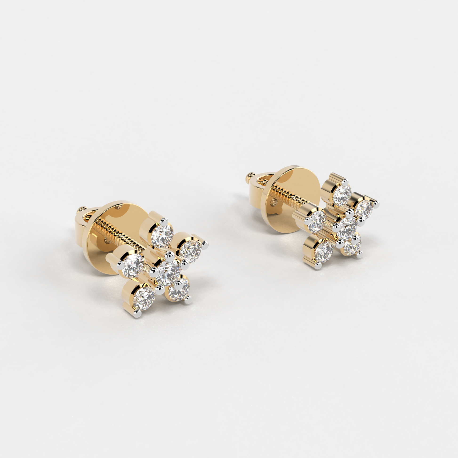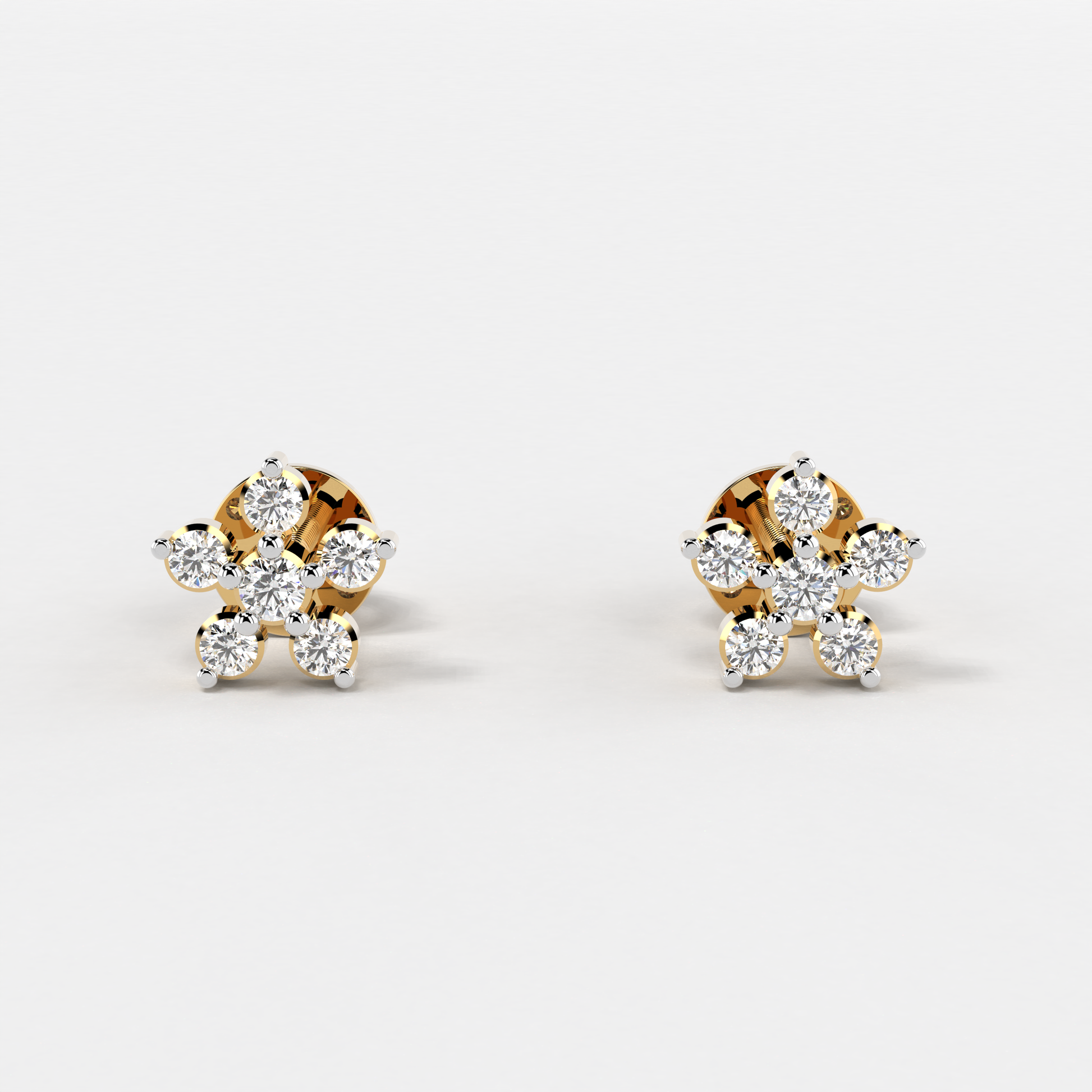 Embrace the celestial charm of these exquisite 'Starburst Diamond Earrings', a masterpiece meticulously crafted by Elior Jewel. These earrings embody the perfect fusion of modern elegance and playful design.Each earring features a captivating starburst design, showcasing five round brilliant-cut diamonds that radiate outwards from a central diamond, like a celestial explosion of light. The diamonds, totaling 0.23 carats in weight approximately, are expertly set to maximize their brilliance and fire, creating a dazzling display that will catch the eye from every angle.The secure posts ensure a comfortable and worry-free fit, allowing you to wear these earrings with confidence throughout the day or evening. Whether you're attending a special occasion or simply adding a touch of sparkle to your everyday look, these 'Starburst Diamond Earrings' are sure to become a cherished addition to your jewelry collection. Their unique design and exquisite craftsmanship make them a symbol of enduring beauty and sophistication.